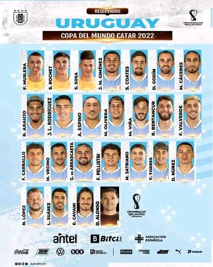 L'Uruguay a annoncé sa liste pour le mondial. 🇺🇾