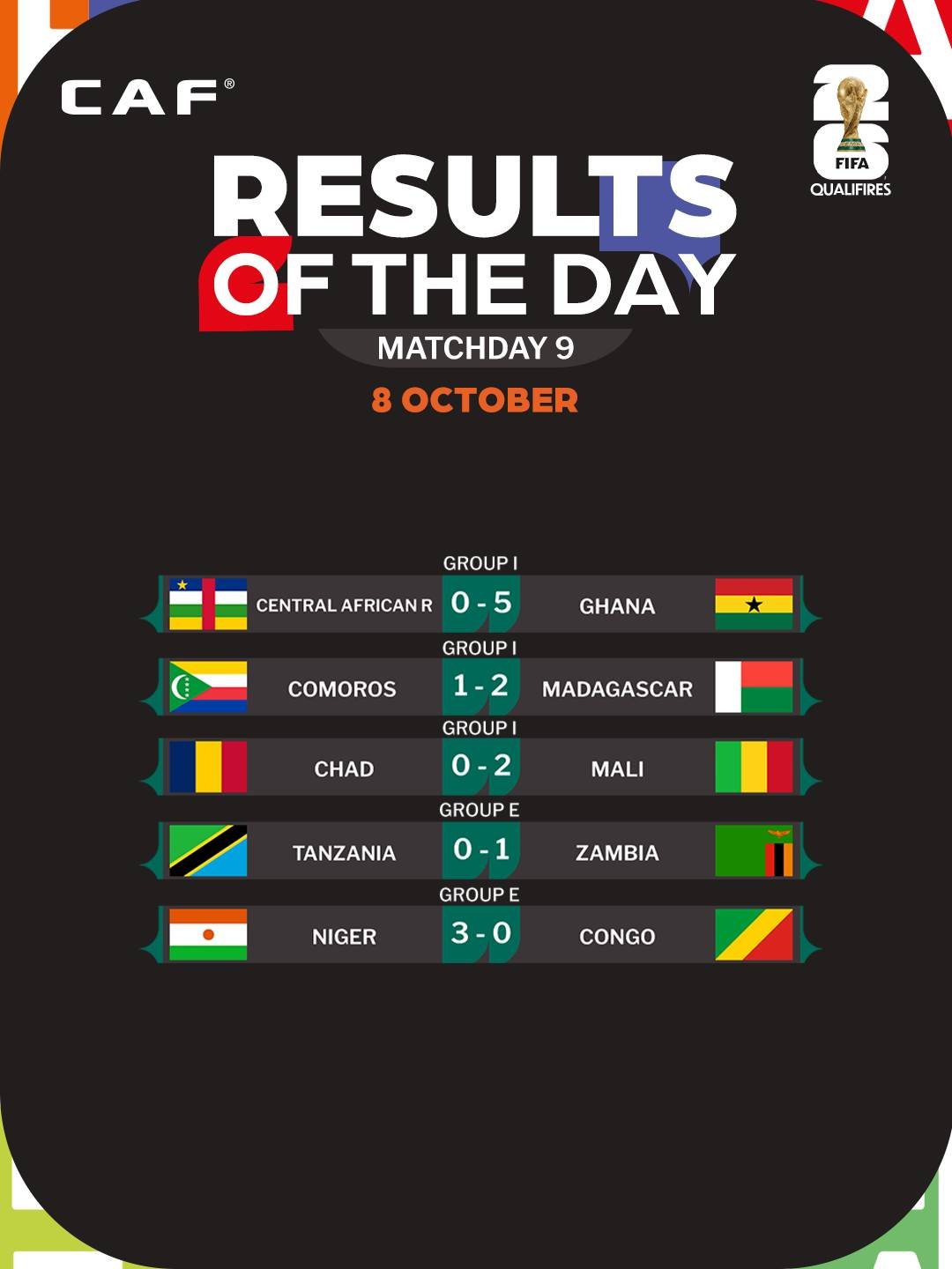 De son côté, le Ghana n’est plus qu’à un pas de la qualification. Les Black Stars ont réalisé une belle opération lors de cette 9ᵉ journée, s’imposant sur le fil face au Mozambique. Grâce à cette victoire, les Ghanéens confortent leur première place et n’auront besoin que d’un point lors de la dernière journée pour assurer leur présence au Mundial 2026. La bande à Thomas Partey et Mohammed Kudus confirme ainsi sa montée en puissance après un parcours marqué par une rigueur tactique et une efficacité offensive retrouvée.