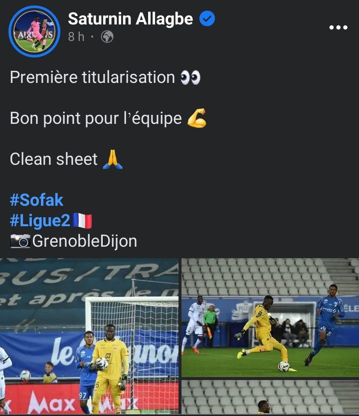 Relégué au banc de touche depuis plusieurs mois à Dijon, Saturnin Allagbé a obtenu du temps de jeu ce samedi 12 novembre 2022. Pour la rencontre de Dijon FCO lors de la 15ème journée de la ligue 2 française 2022-2023, Allagbé a obtenu sa première titularisation en championnat. A l’extérieur contre Grenoble Foot, Saturnin Allagbé et Dijon ont fait match nul sur le score de 0-0. Le gardien de but béninois a su garder sa cage inviolée pour sa première titularisation en championnat cette saison 2022-23.