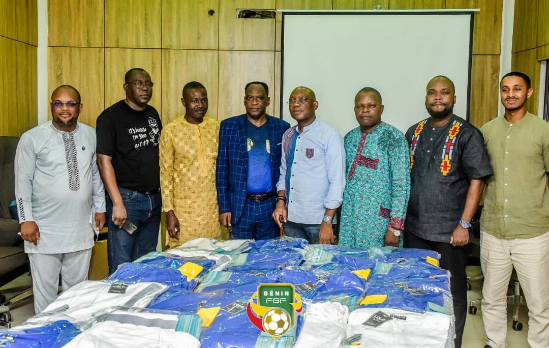 La cérémonie s’est achevée par la remise symbolique des tenues aux membres du Comité exécutif qui se chargeront de les transmettre à l’équipe qui est actuellement en regroupement au Maroc. En retour, la Fédération Béninoise de Football a offert deux maillots de l’équipe nationale à Lolo Andoche en guise de son soutien indéfectible au sport roi. Il faut noter la présence de William Fangbédji et de Laurent Gnassounou respectivement septième et huitième vice-président du Comité exécutif de la Fbf, de Fallilou Tidjani et de Justin Saïzonou, membres du Comité exécutif de la FBF.