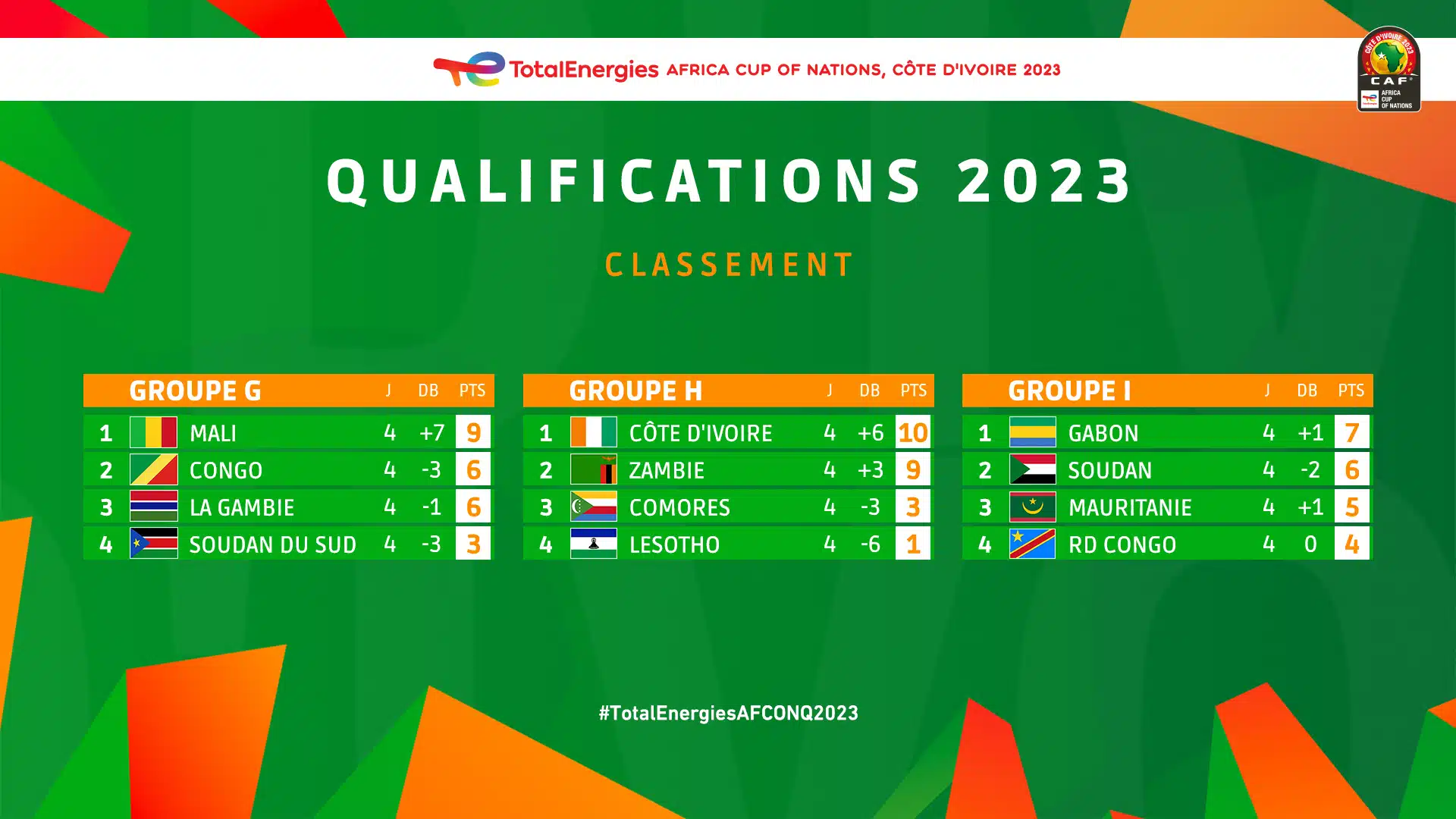 Dans ce groupe G, le Mali est premier (9 points) et presque qualifié. Le Congo et la Gambie (6 points chacun) sont quant à eux en embuscade pour décrocher le second ticket. Le Soudan du Sud, 3 points au compteur, peut encore créer l’exploit.