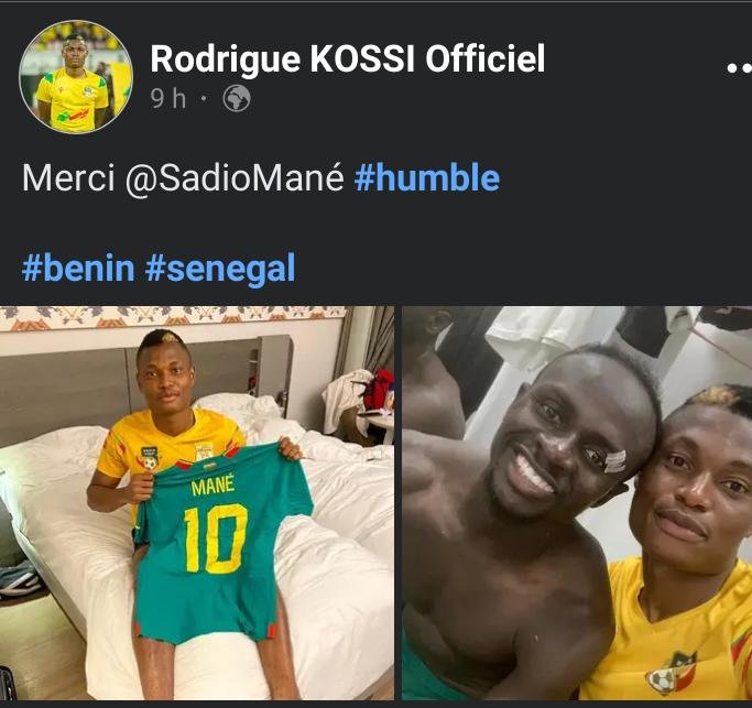 Rodrigue Kossi, visiblement ému par ce geste de Sadio Mané, a exprimé sa satisfaction et sa reconnaissance sur ses plateformes de médias sociaux. Dans un message accompagné des photos, Kossi a exprimé sa gratitude envers Mané en utilisant le hashtag « humble ».