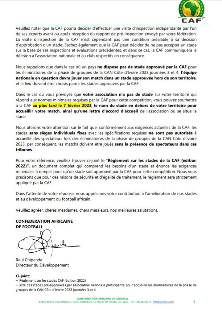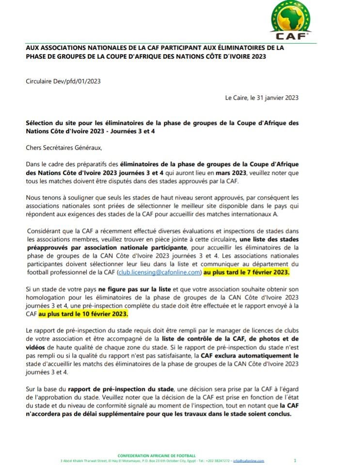 FR Circulaire – Lieux éliminatoires CAN CIV J3&4 – 31 01 2023