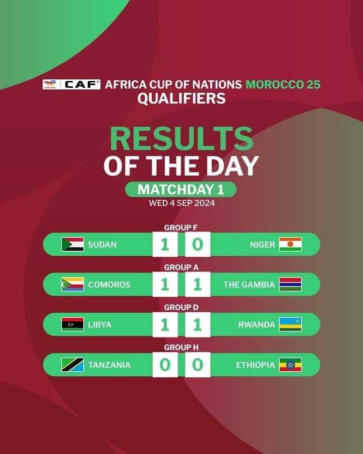 Ce mercredi 4 septembre 2024, les éliminatoires de la CAN 2025 ont pris leur envole. Les premiers matchs de la premières journée étaient à l’honneur. La Libye et le Rwanda ont lancé les hostilités dans le groupe D ou se trouve le Bénin. Les deux équipes se sont quittées sur un score de parité (1-1) lors de cette première journée, un résultat qui laisse les deux adversaires du Bénin à égalité après leur entrée en compétition.