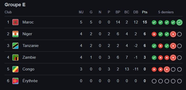 Alors que la phase de qualification est encore loin d’être terminée, certaines nations ont déjà pris une sérieuse option pour la qualification. Parmi elles, le Maroc, le Ghana et l’Égypte qui ont enchaîné les victoires et consolidé leur place de leader dans leurs groupes respectifs. Avec seulement 4 journées restantes, les écarts commencent à se creuser, et les équipes les mieux classées peuvent déjà entrevoir une qualification historique pour la prochaine Coupe du Monde à 48 équipes.