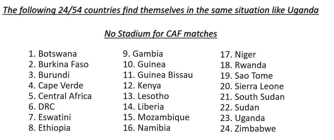Depuis des années, la CAF ne ménage aucun effort pour garantir le respect des exigences en matière de qualité des infrastructures footballistiques sur le continent africain. À cet effet, l’instance ne cesse de mettre à jour sa liste des stades non homologués, pays par pays. Récemment, et en vue de la suite des éliminatoires de la CAN 2023, la CAF a révélé que sur 54 pays africains, 24 ne disposent pas du moindre stade aux normes internationales sur leur territoire. Découvrez la liste.
