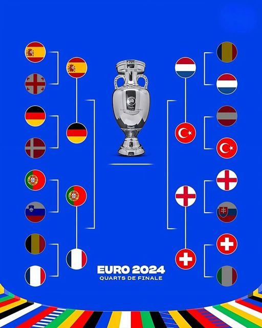 L’Espagne, l’Allemagne, le Portugal, la France, l’Angleterre, la Suisse, les Pays-Bas et la Turquie sont les sélections qui ont validé leurs tickets pour les quarts de finale de l’Euro 2024.