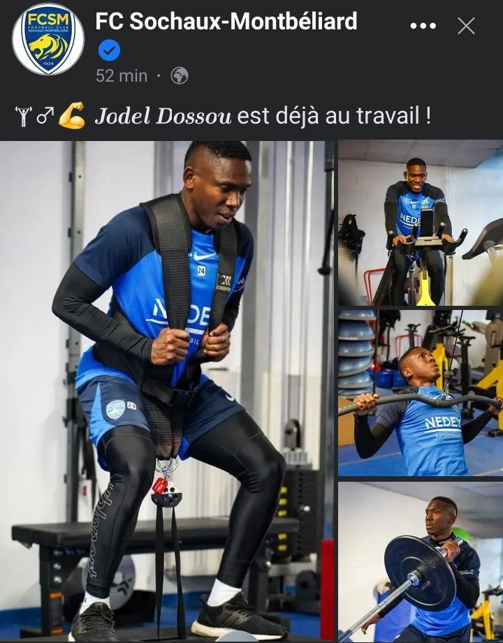 Ce mardi 24 janvier 2023, l’international béninois Jodel Dossou a quitté Clermont pour rejoindre le FC Sochaux. Le joueur béninois qui était cruellement en manque de temps de jeu a rejoint un nouveau club avec lequel il va évoluer en Ligue 2 française. Et juste après sa signature, Dossou s’est déjà mis au travail avec son nouveau club. Dans une publication sur la toile, le FC Sochaux a affiché Jodel DOSSOU travaillant à la salle de gym.