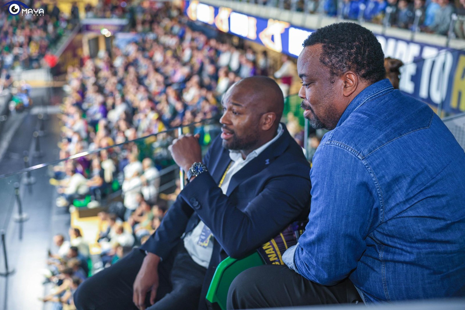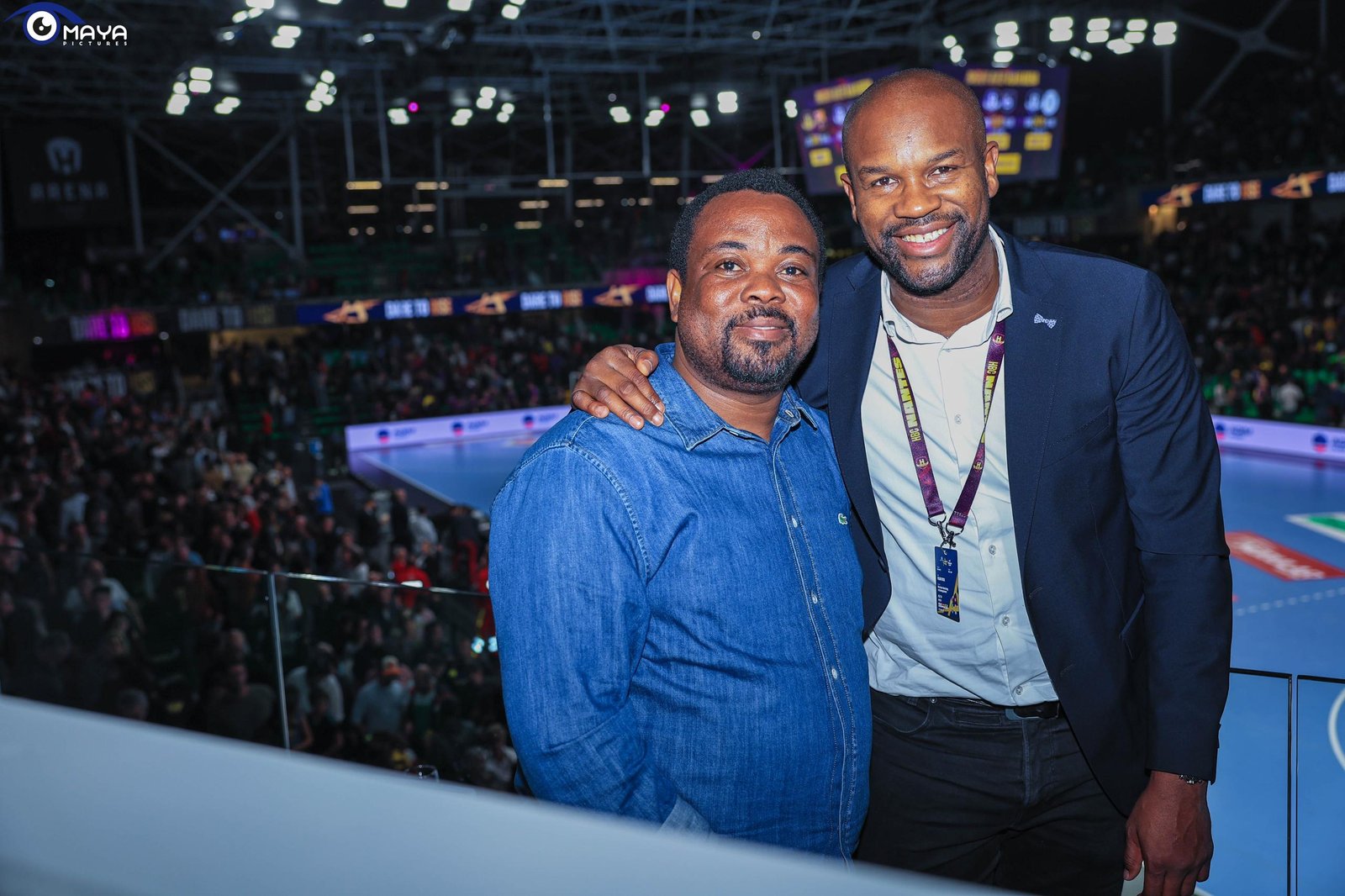 Dans une ambiance électrique et une salle comble, les Violets se sont imposés ce mercredi 23 octobre 2024, dans le money time sur un score de 32-29. Aux côtés du président Gaël Pelletier et de Rock Feliho (Directeur Développement & Marketing et ancien capitaine du H), le patron du handball béninois a assisté à une belle rencontre.