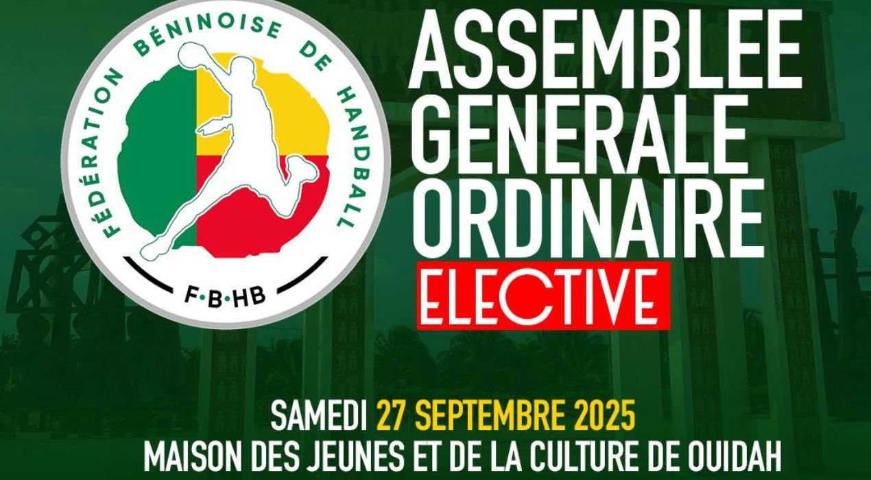 La grande famille du handball béninois a rendez-vous ce samedi 27 septembre 2025 à la Maison des Jeunes et de la Culture de Ouidah pour un moment décisif. Il s’agit de l’Assemblée générale ordinaire élective de la Fédération Béninoise de Handball (FBHB). À partir de 09h00, les acteurs, clubs, dirigeants et délégués se réuniront pour dresser le bilan de la mandature écoulée et surtout élire la nouvelle équipe dirigeante appelée à conduire la destinée de la fédération au cours des prochaines années.