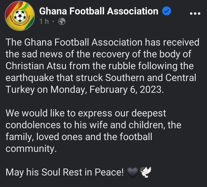 La nouvelle a été confirmée ce samedi 18 février 2023. L’international Ghanéen Christian Atsu a été retrouvé mort dans les décombres d’un immeuble effondré à la suite du tremblement de terre qui a frappé le sud et le centre de la Turquie le lundi 6 février 2023. Dans la foulée de cette triste nouvelle, la Fédération Ghanéenne de Football a annoncé sa décision de rendre particulièrement hommage à son désormais ancien joueur.
