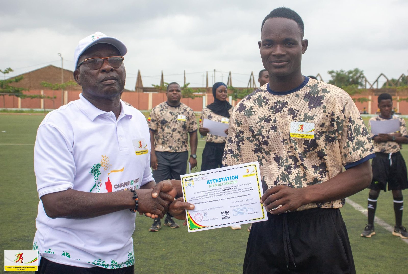La formation s’est clôturée le 12 juillet 2025 par une cérémonie de remise d’attestations organisée au stade municipal de Parakou, en présence du formateur national. Cette initiative s’inscrit dans la dynamique de professionnalisation du Maracana au nord du Bénin et dans la volonté de structurer davantage la filière arbitrale à l’échelle régionale.