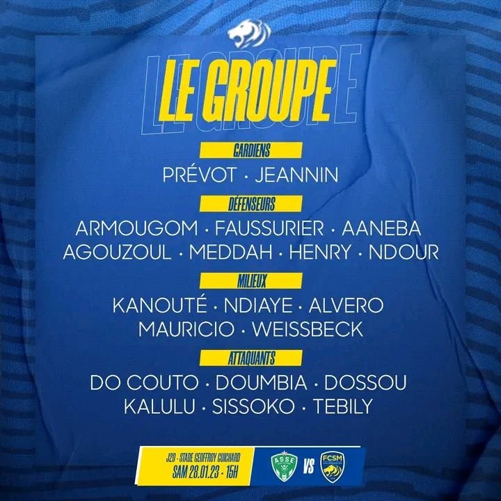 Le mardi 24 janvier 2023, Jodel Dossou a rejoint les rangs du club français, FC Sochaux-Montbéliard. L’international béninois n’a pas perdu du temps avec son club. En effet, après avoir été présenté en grande pompe aux supporters du FC Sochaux, Jodel Dossou s’est mis automatiquement. Et ce vendredi 27 janvier 2023, Jodel Dossou a été convoqué pour la première fois avec son club. Une convocation qui entre dans le cadre du déplacement de son club sur la pelouse de l’AS Saint-Étienne. Match prévu pour ce samedi à 15h.