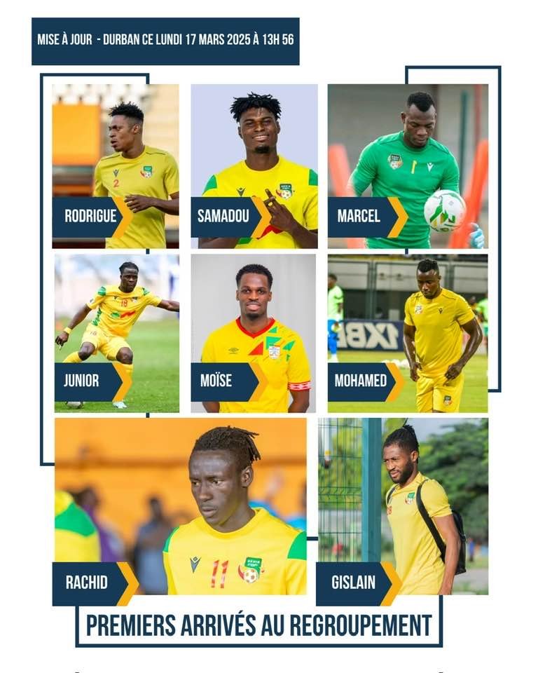 En effet, ce lundi 17 mars 2025, plus de DE huit joueurs convoqués ont déjà répondu présent. Parmi eux : Rodrigue Fassinou, Rachid Moumini, Marcel Dandjinou, Samadou Attidjikou, Gislain Ahoudo, Moïse Adilèhou, Mohamed Tijani et Junior Olaitan. L’ambiance monte déjà, les prochains jours verront l’arrivée progressive des autres joueurs convoqués.