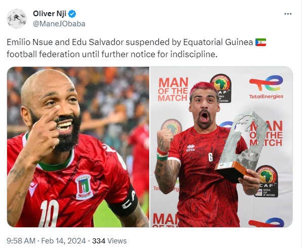Cette suspension marque un tournant pour la Guinée Equatoriale après sa brillante performance à la CAN 2023. Reste à voir quelle sera la durée de ces sanctions et si elles auront un impact sur la carrière internationale de Nsue, compte tenu de son âge avancé.