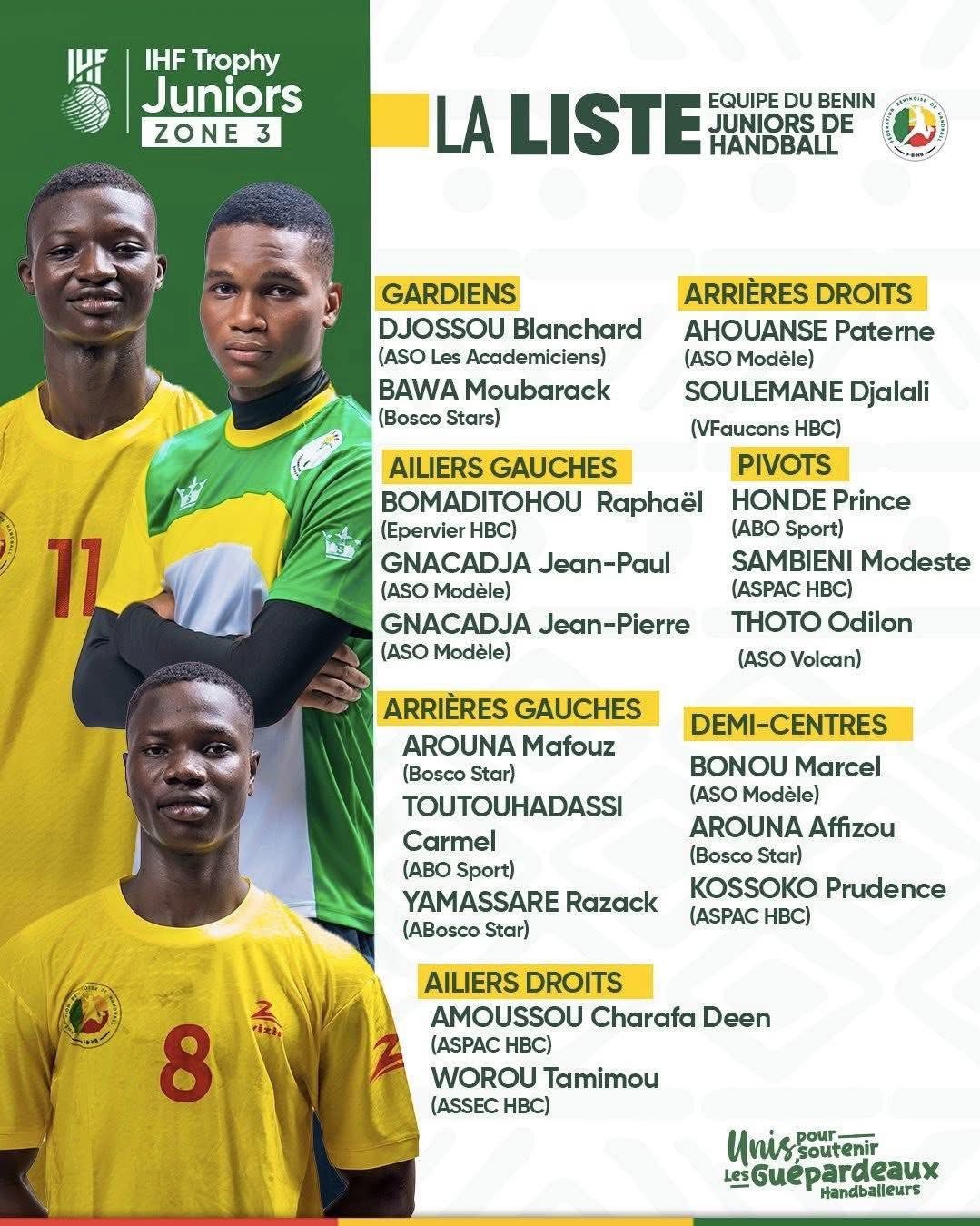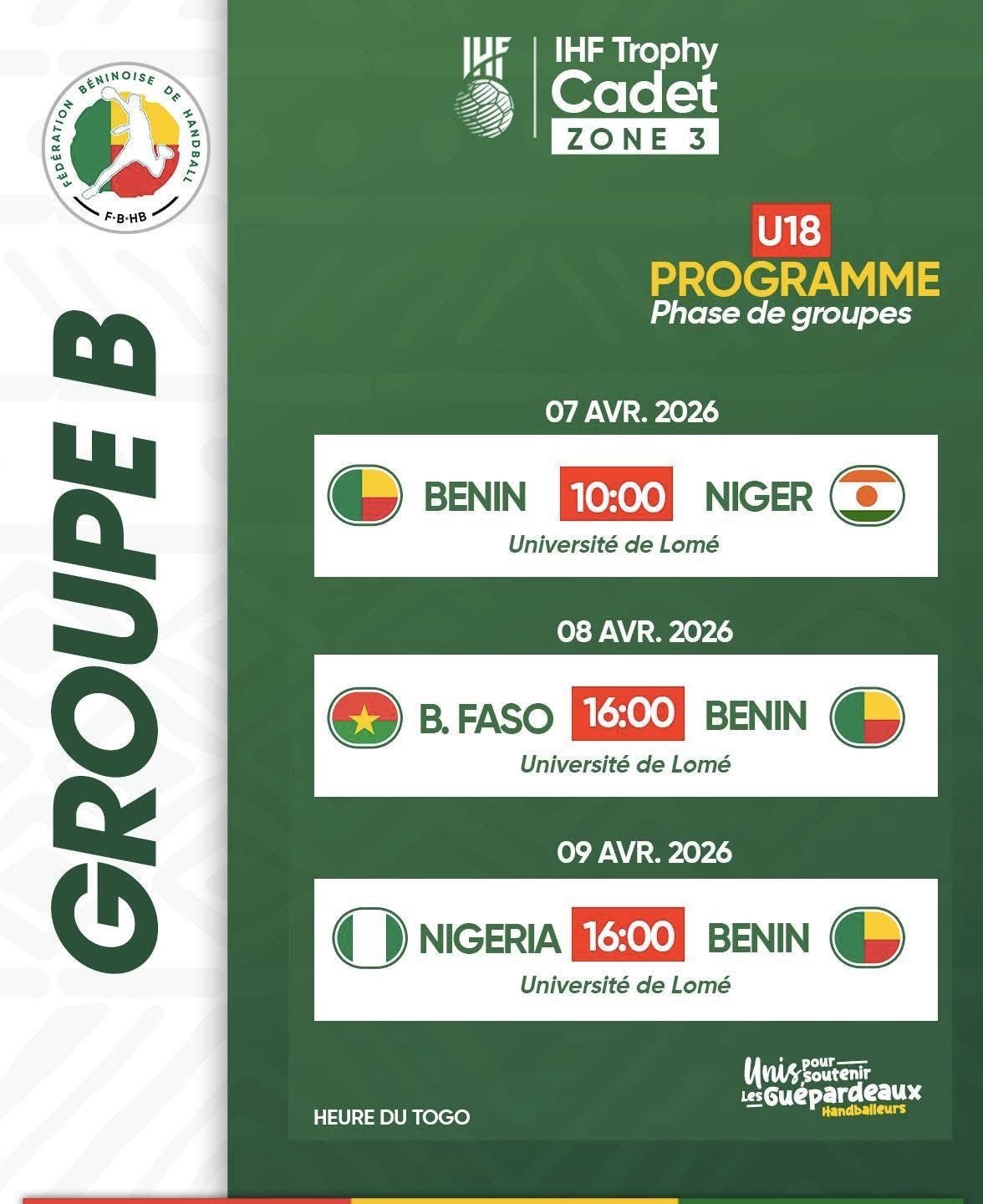 Le Bénin sera représenté par ses Guépards U18 et Guépards U20 à l’IHF Trophy masculin de la zone III, organisé à Lomé à partir de ce mardi 7 avril 2026. Ce tournoi, piloté par la Fédération Internationale de Handball, est une plateforme stratégique pour les nations émergentes afin de promouvoir le handball chez les jeunes, détecter les talents et offrir une expérience internationale aux sélections U18 et U20.