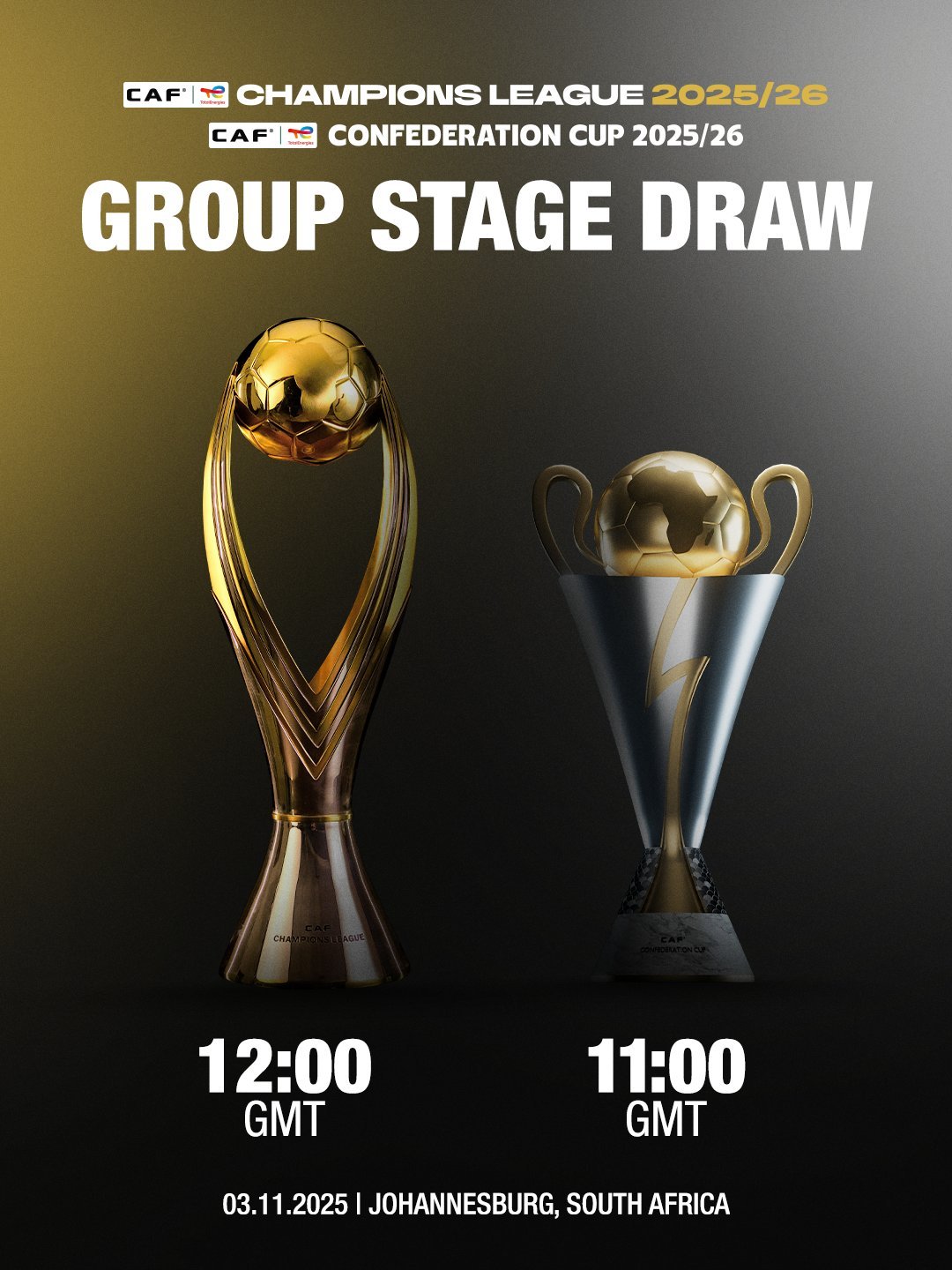 Le tirage au sort officiel de la phase de groupes de la Coupe de la Confédération CAF 2025/26 aura lieu le lundi 3 novembre dans les studios de la chaîne PSuperSport à Johannesburg. La cérémonie débutera à 13h (heure d’Afrique du Sud) / 11h GMT et sera retransmise en direct sur les plateformes numériques de la CAF.