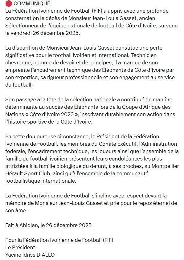 Cette disparition intervient dans un contexte particulièrement symbolique. La CAN occupait une place centrale dans le parcours récent de l’entraîneur français, ancien sélectionneur de la Côte d’Ivoire, avec laquelle il avait vécu l’un des épisodes les plus marquants de l’histoire de la compétition.