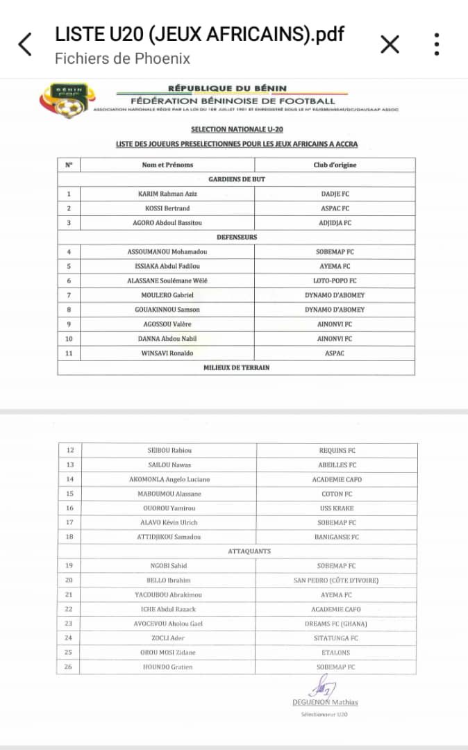 - À noter la présence de nouveaux venus, à l’instar de Moulero Gabriel et Rabiou Seibou, qui découvriront la sélection U20 pour la première fois.