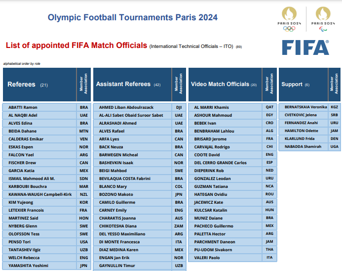 Au total, la liste comprend 89 représentants du corps arbitral issus de 45 pays différents. En plus des arbitres africains, des officiels d’autres continents seront également présents pour contribuer à assurer le bon déroulement des tournois olympiques de football.