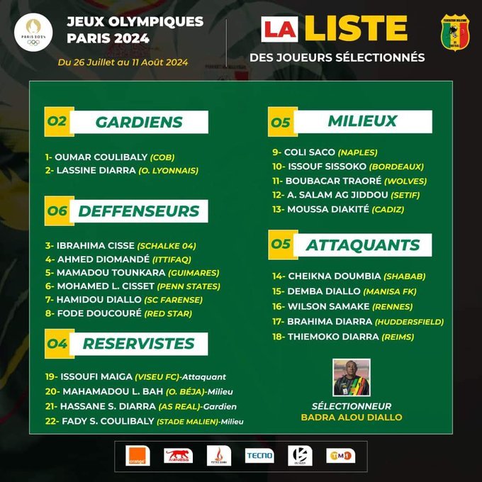 Troisième de la dernière Coupe d’Afrique des Nations U-23, le Mali débutera son tournoi face au champion d’Asie avant de croiser le fer avec Israël et de sceller son parcours au premier tour contre le Paraguay.