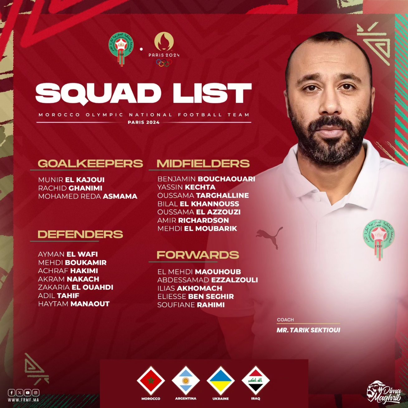 Champion d’Afrique U-23 en titre, le Maroc a hérité du Groupe B en compagnie de l’Argentine. Marocains et Argentins croiseront le fer dès la première journée de la quinzaine, le 24 juillet à Marseille. Les Lions de l’Atlas affronteront après l’Irak avant de croiser le fer avec l’Ukraine.