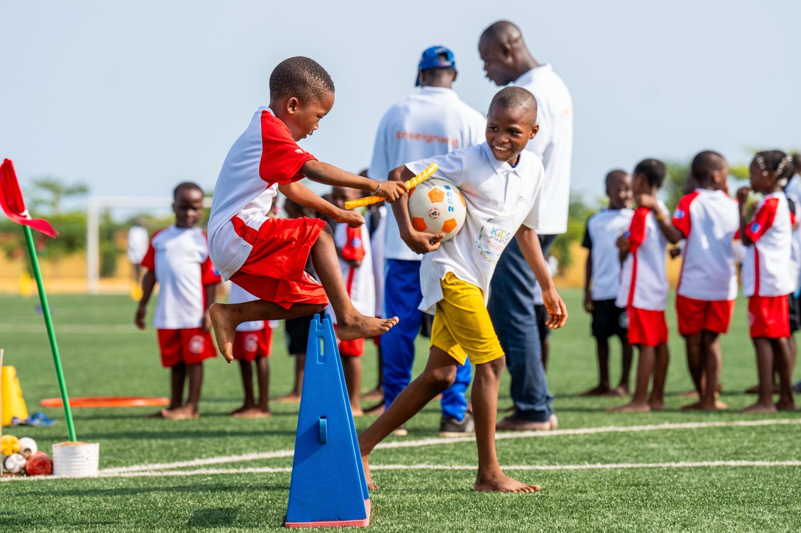 Le Kids’ Athletics, programme développé par World Athletics, initie les enfants aux gestes fondamentaux de l’athlétisme, courir, sauter, lancer dans un cadre ludique et inclusif. Les activités proposées permettent aux jeunes participants d’éveiller leur corps tout en développant le sens de l’effort, de la coopération et de l’engagement collectif. Présent sur les lieux, le Président de la Fédération Béninoise d’Athlétisme a rappelé la dimension humaine et sociale du sport : « Nous affirmons notre conviction profonde que le sport est un puissant moteur de paix, de cohésion sociale et de développement humain, en particulier dans les pays qui œuvrent à la consolidation de leur tissu social. Courir, sauter, lancer, voilà l’essence même du mouvement humain. »