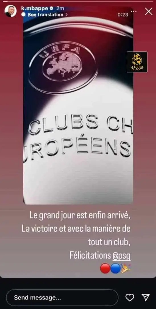 Dès le coup de sifflet final, les félicitations ont afflué vers le club de la capitale. Kylian Mbappé, ancienne icône du PSG, a immédiatement réagi sur Instagram : « Le grand jour est enfin arrivé, la victoire et avec la manière de tout un club. FÉLICITATIONS PSG ! »
