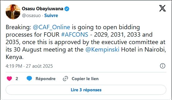 L’annonce officielle est attendue samedi 30 aout 2025, à l’issue de la réunion du comité exécutif de la CAF.