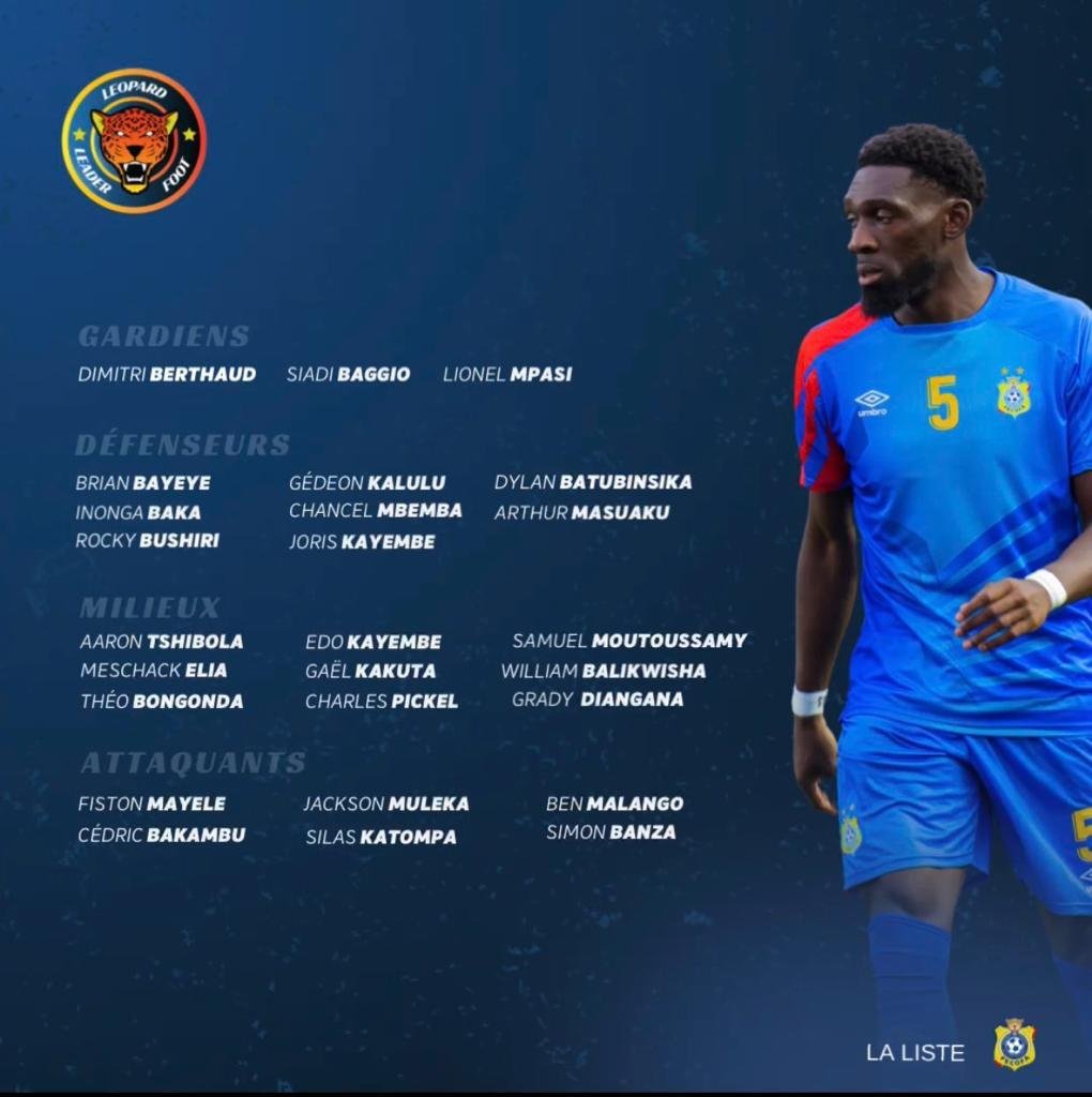 Pour le compte des journées FIFA octobre 2023, qui débutent le 09 octobre, le sélectionneur de la République Démocratique du Congo Sébastien Desabre a publié sa liste de 26 joueurs. Les Léopards vont disputer deux matchs amicaux. Ils affronteront la Nouvelle-Zélande le 13 octobre en Espagne et l’Angola le 17 octobre au Portugal. Grady Diangana de West Bromwich Albion et Simon Banza de Sc Braga au Portugal sont les nouvelles têtes de cette liste.