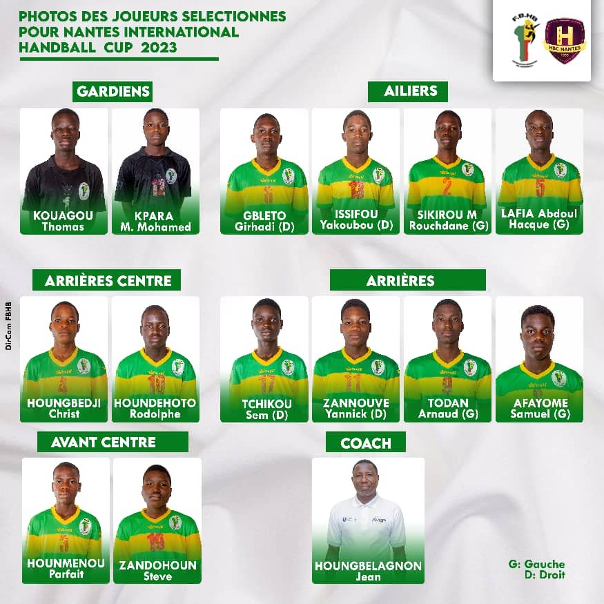 La Liste officielle du Bénin pour le Nantes International Handball Cup 2023