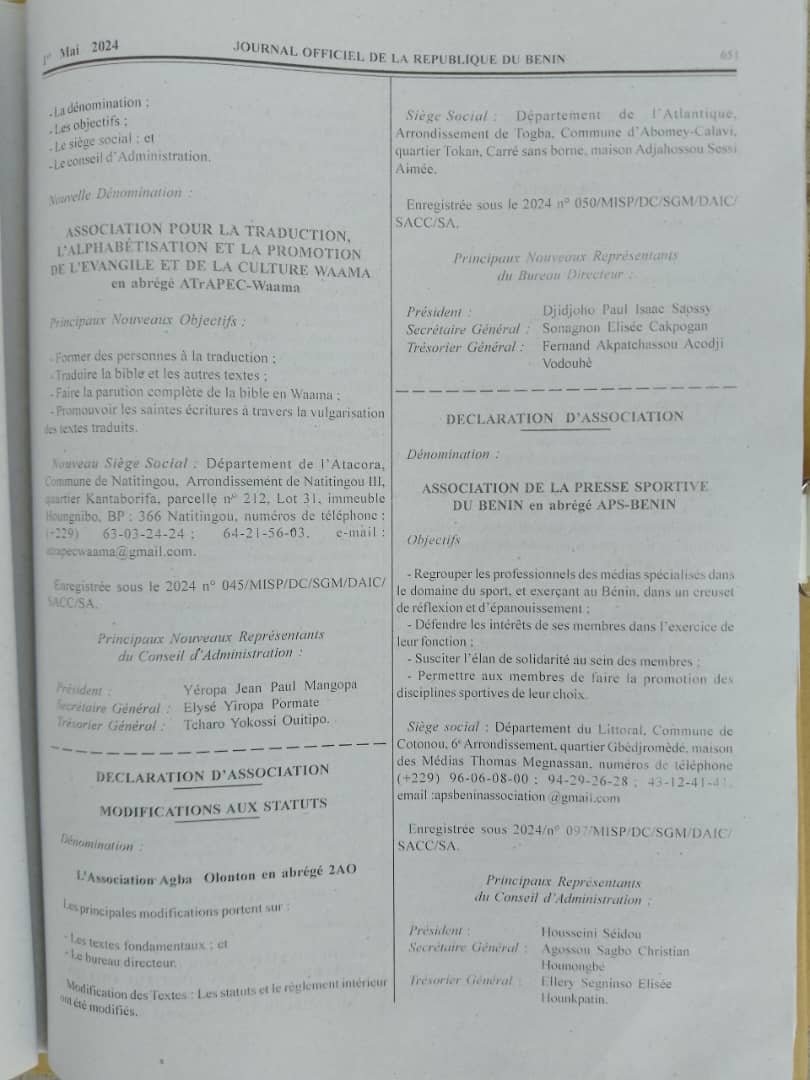 L’Association de la Presse Sportive du Bénin (APS-Bénin), officiellement lancée en juillet 2023, continue de marquer des points. Cette association, fondée pour regrouper les professionnels des médias spécialisés dans le sport au Bénin, a atteint une nouvelle étape historique en obtenant son récépissé d’enregistrement. Elle a été publiée au Journal officiel du 1er mai 2024. L’information a été annoncée dans un communiqué rendu public ce mercredi 15 mai 2024.