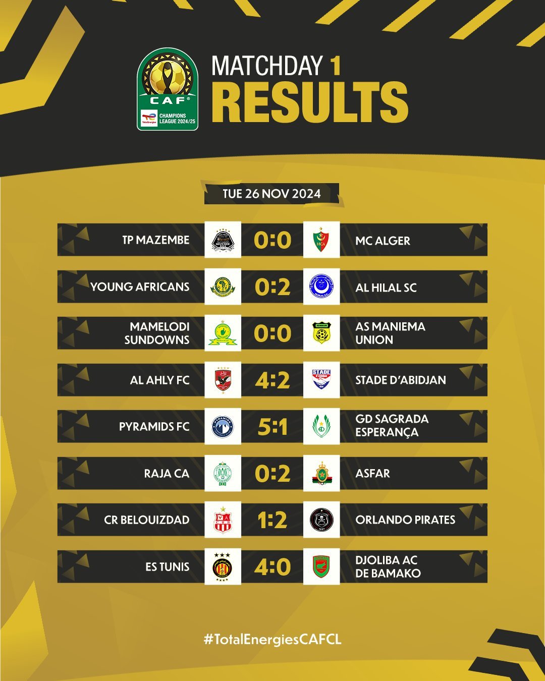 Les clubs égyptiens ont marqué cette première journée. Al Ahly, tenant du titre, a dominé le Stade d’Abidjan (4-2) avec une attaque percutante, tandis que Pyramids a écrasé les Angolais de Sagrada Esperança (5-1), grâce à une fin de match spectaculaire.