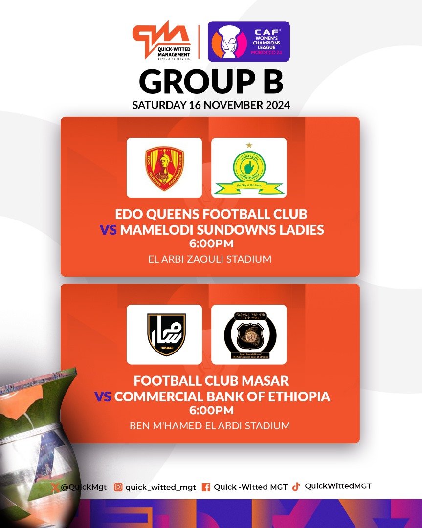 Il faut préciser que la situation de ce groupe actuellement est de sorte que Edo Queens et le FC Masar se partagent la première place avec 4 points, tandis que les Mamelodi Sundowns suivent avec 3 points.