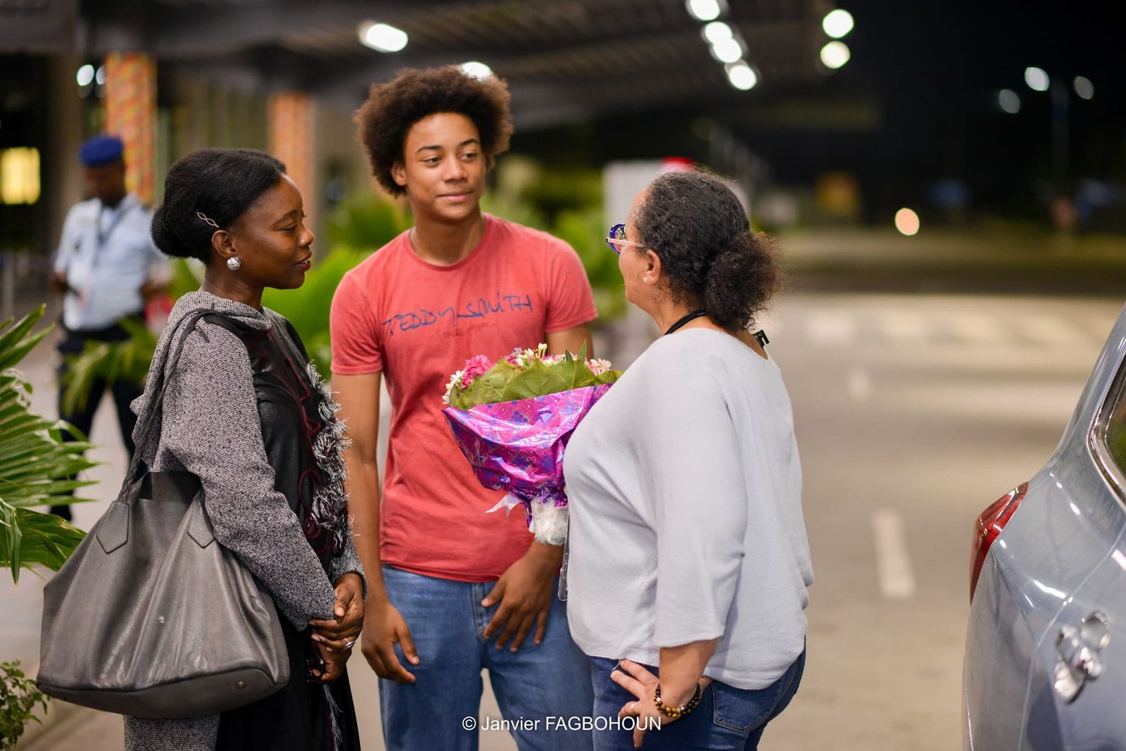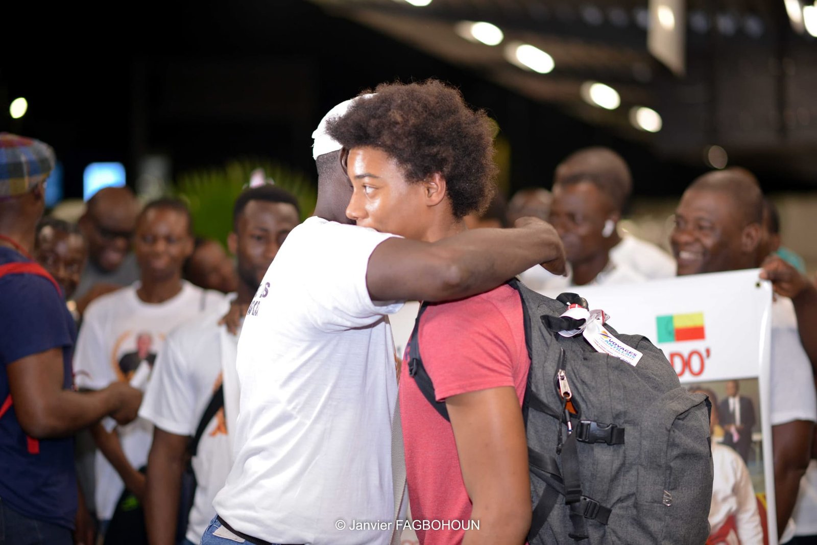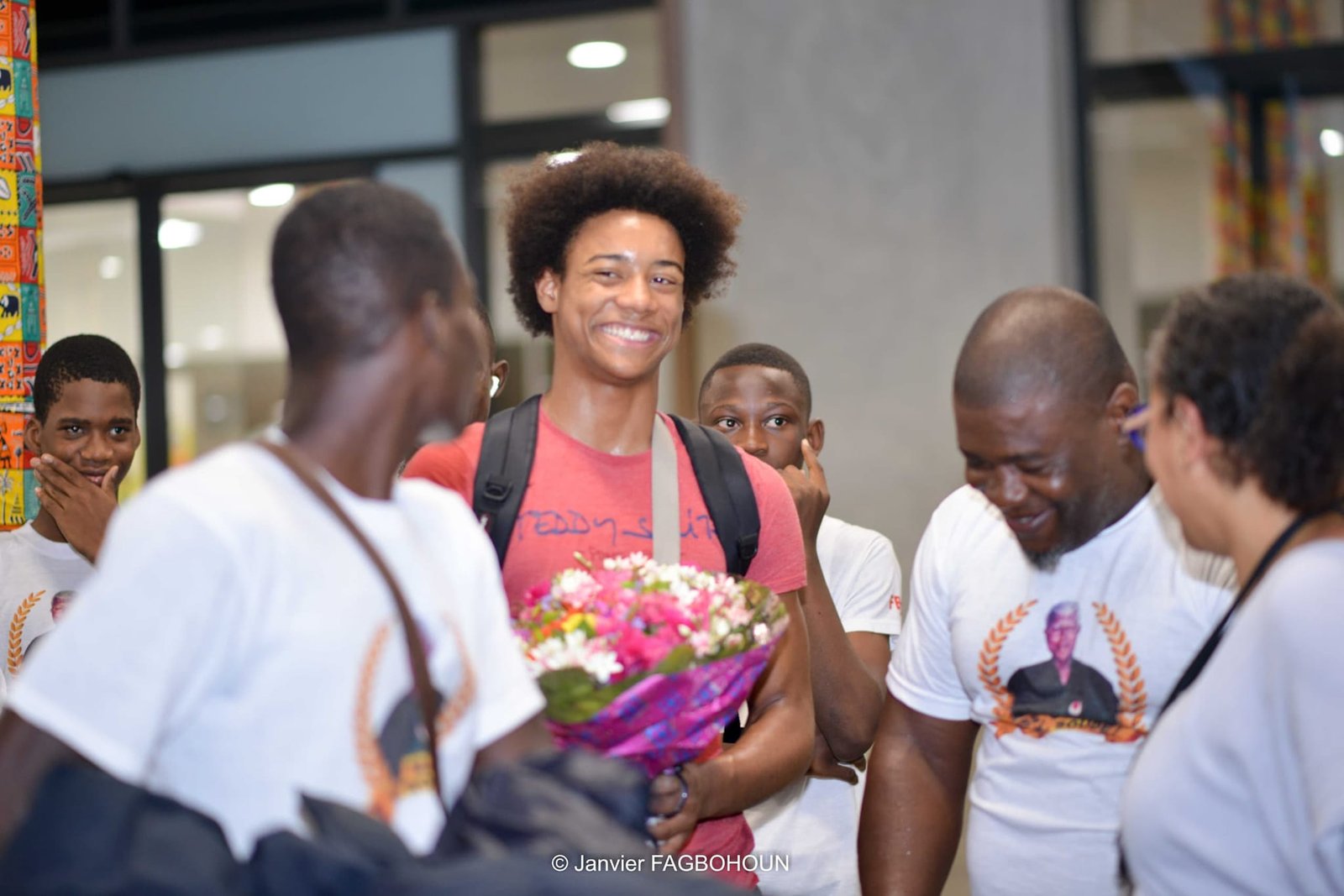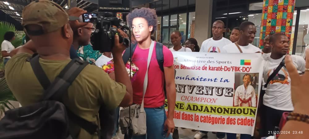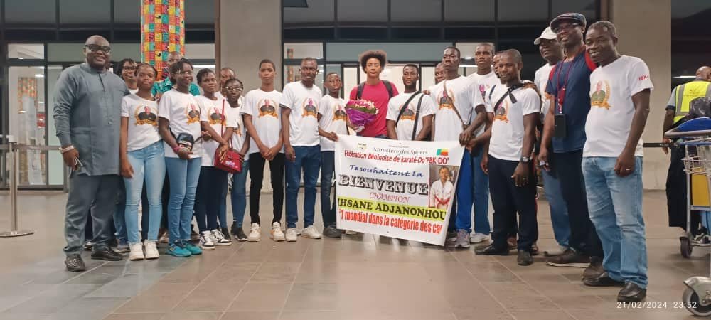 C’est dans la nuit du mercredi 21 février 2024, Ihsane Adjanonhoun est arrivé à Cotonou, au Bénin. Il était en compagnie de son père Pierre-Monique Adjanonhoun, instructeur et formateur de karaté, ainsi que de sa mère. Ils ont été accueillis par une forte délégation de la fédération béninoise de karaté-Do, dirigée par son président, Rock Armel Quenum, et ses coéquipiers membres de l’équipe nationale du Bénin de karaté.