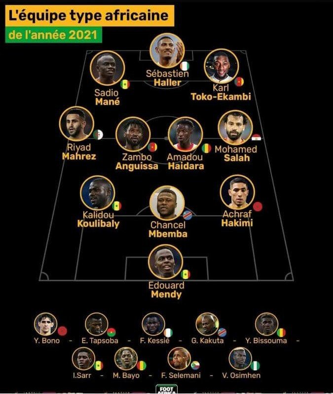 Cette équipe type a été réalisé par la magazine Foot africa et se présente comme suite :