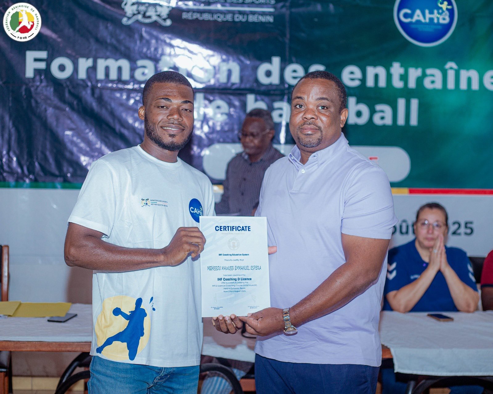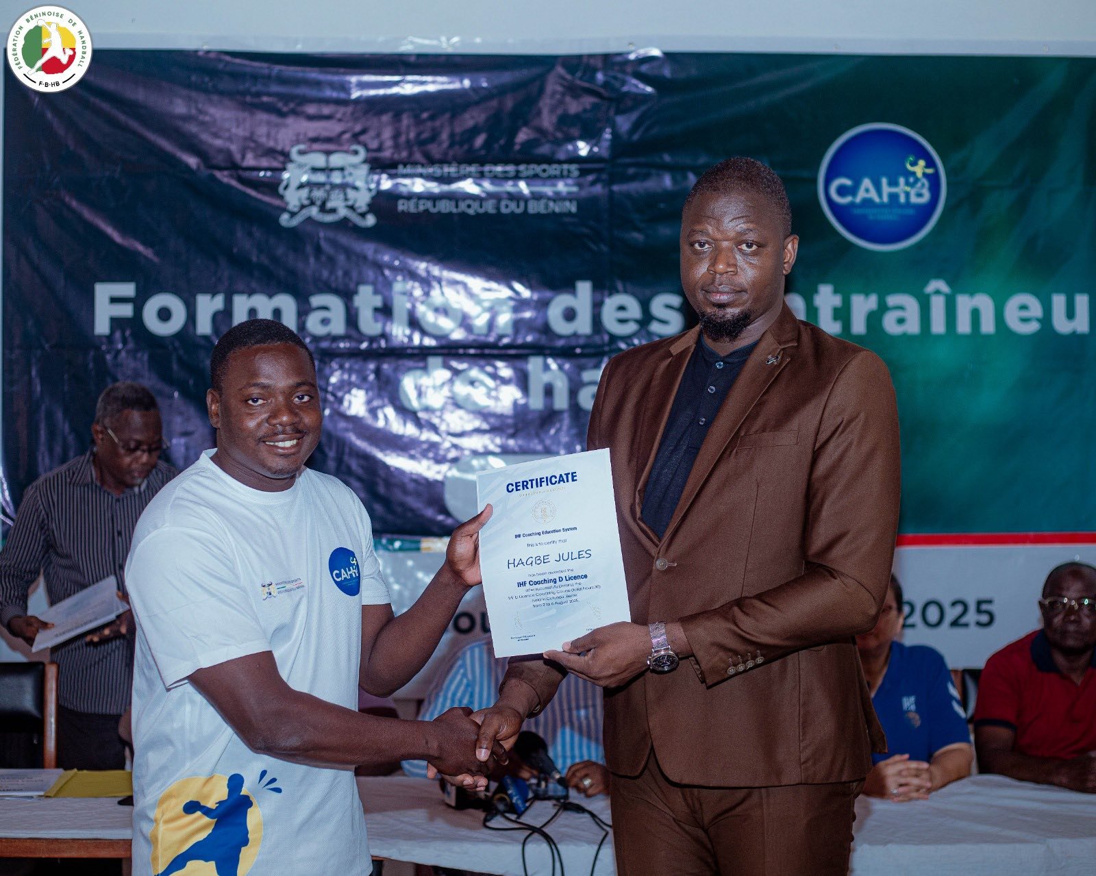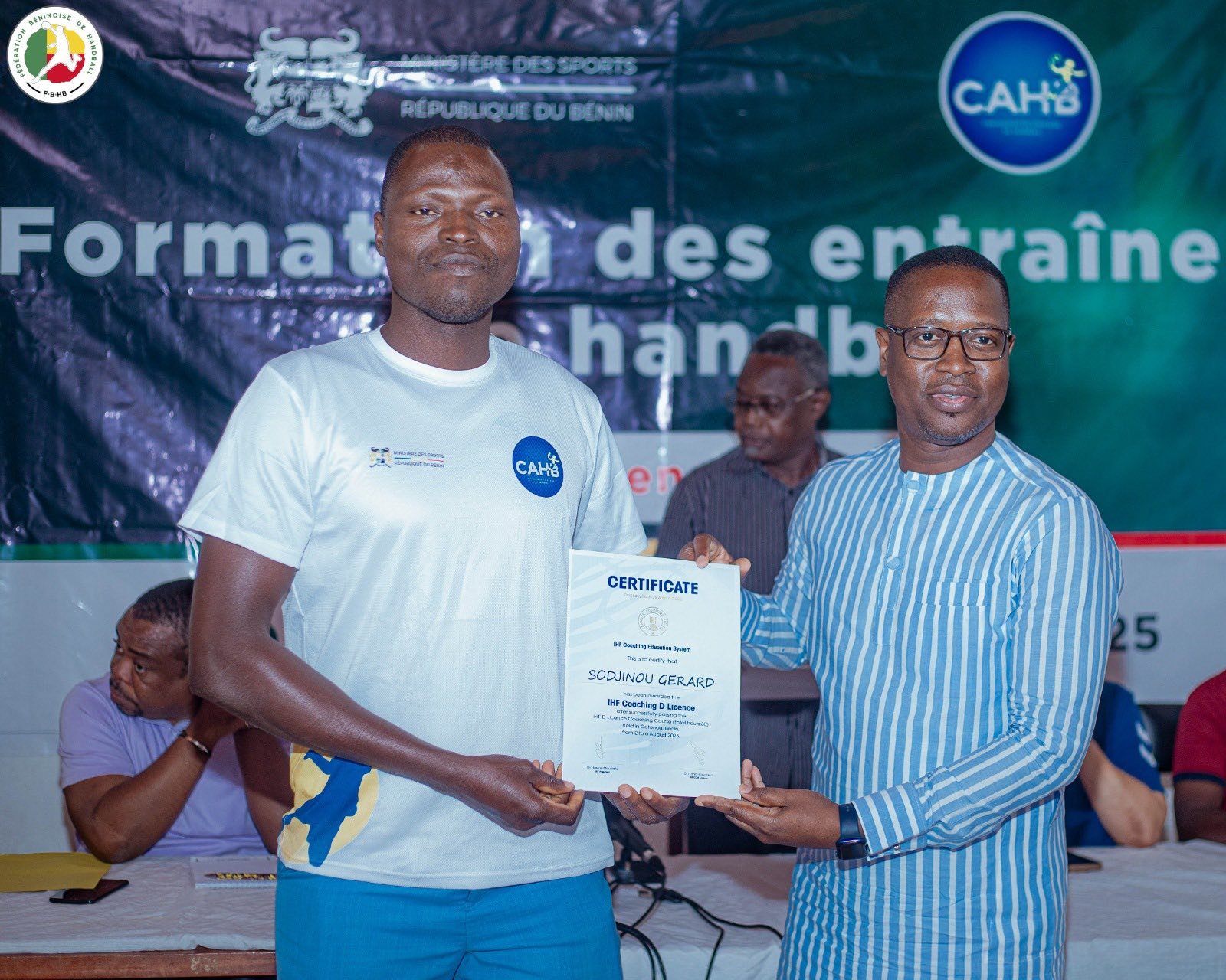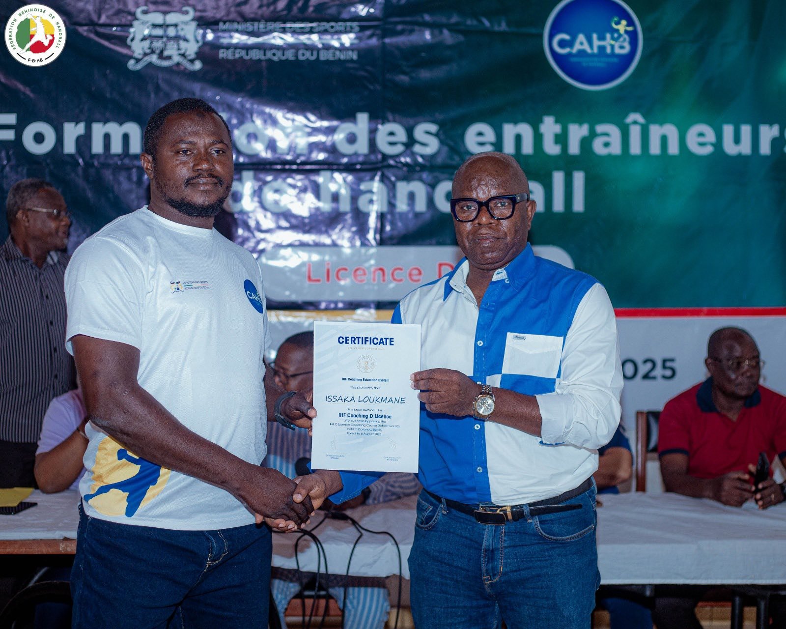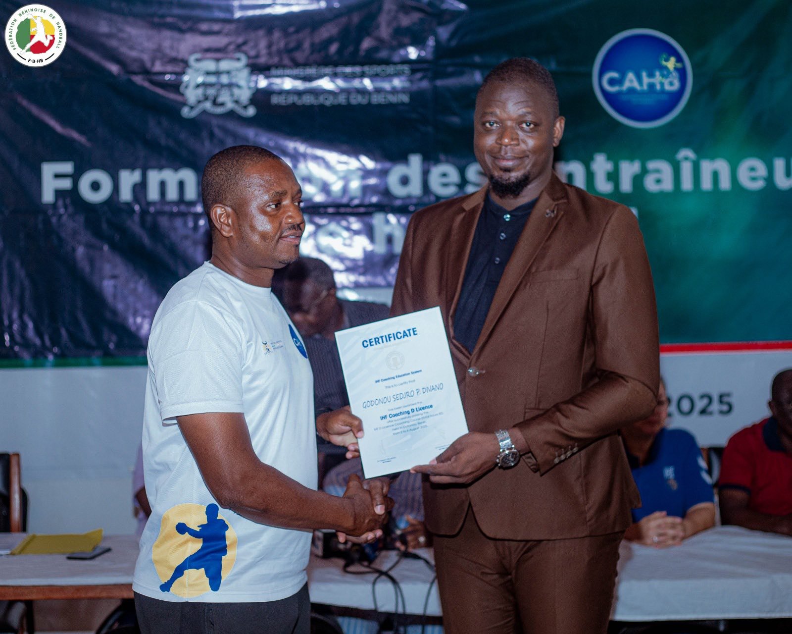 Le Bénin franchit une nouvelle étape dans la professionnalisation de son handball. Ce jeudi 7 août 2025, la Maison du Handball à Cotonou a abrité la cérémonie de clôture de la formation des entraîneurs pour l’obtention de la Licence D IHF. Durant cinq jours, du samedi 2 au jeudi 7 août, 42 encadrants béninois venus des quatre coins du pays ont été formés avec rigueur et enthousiasme. Organisée par le ministère des Sports à travers la Fédération béninoise de handball (FBHB), cette formation s’inscrit dans la dynamique de renforcement des capacités locales.
