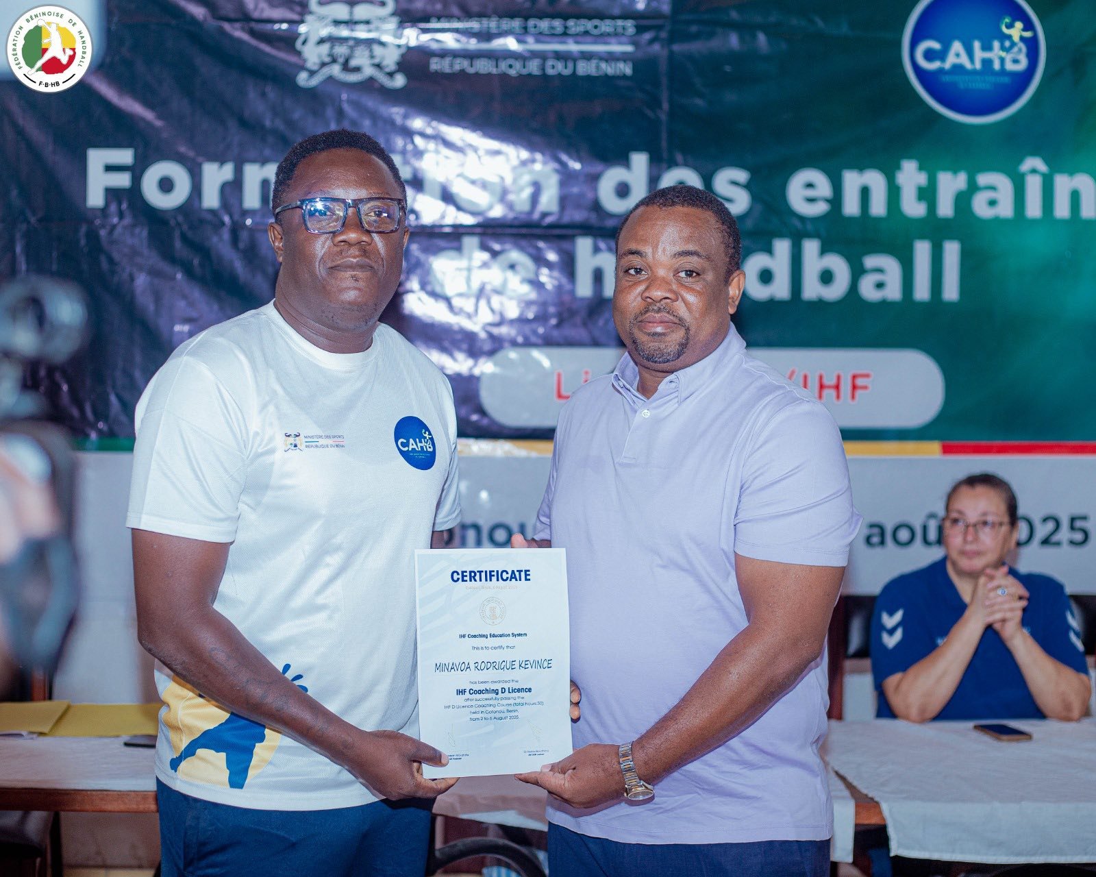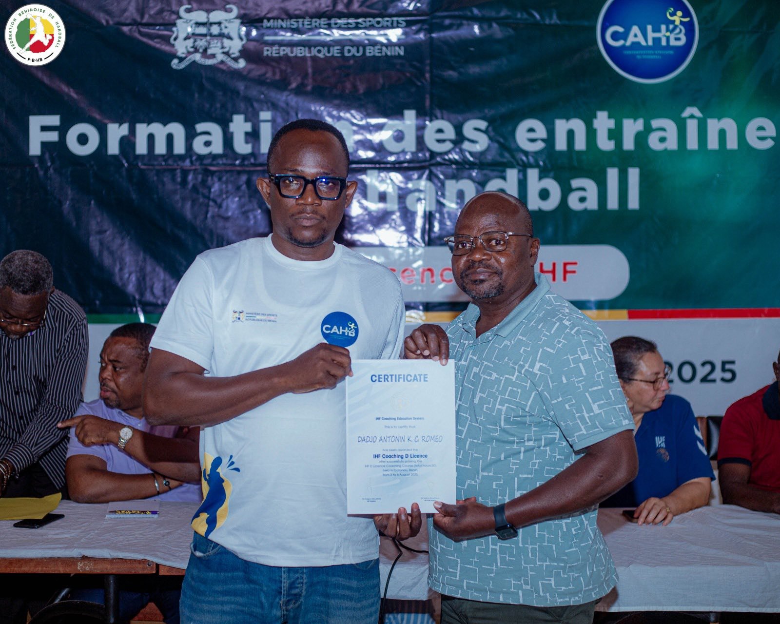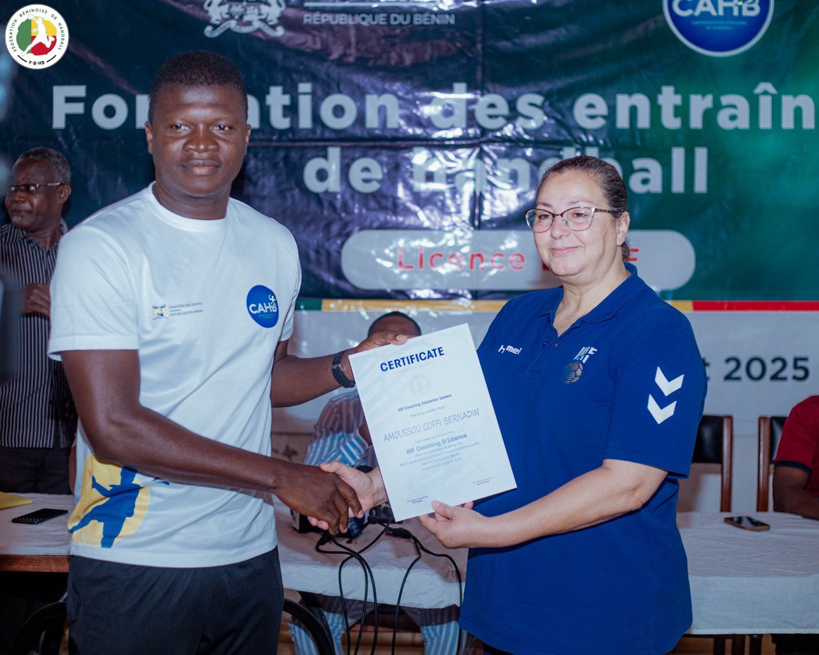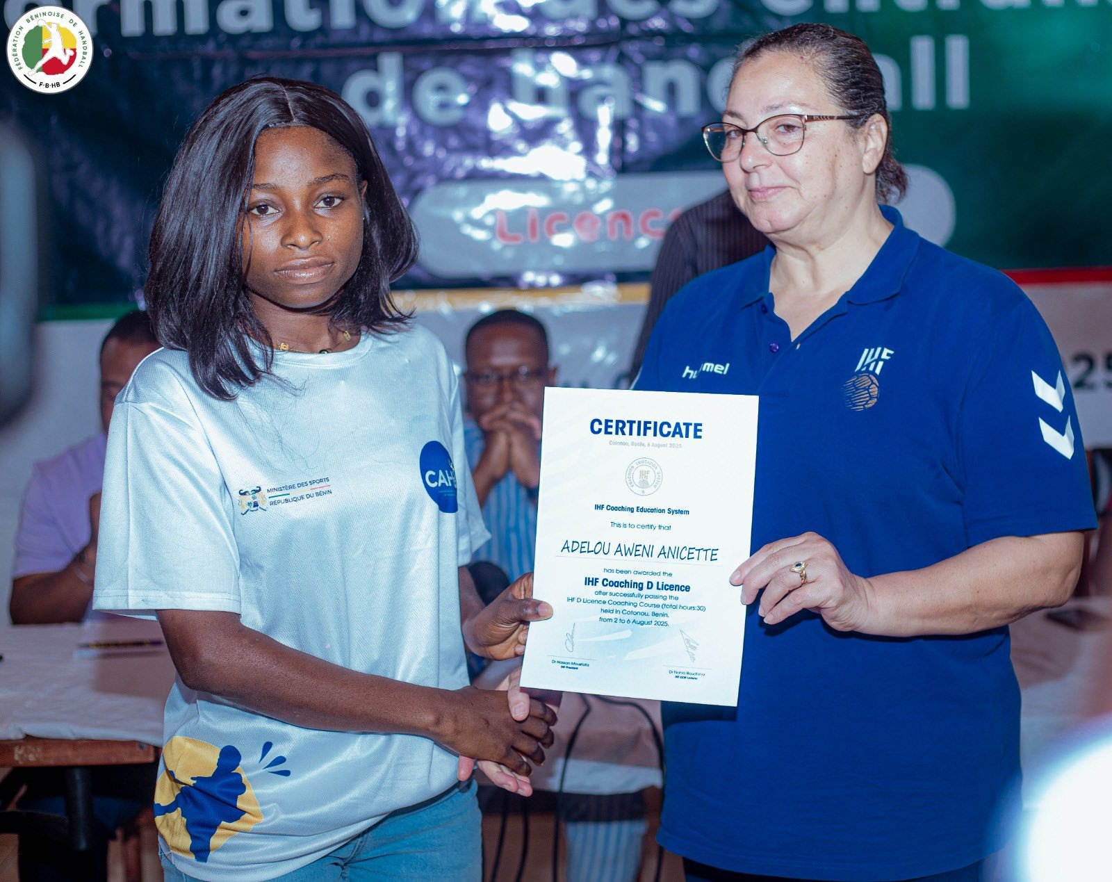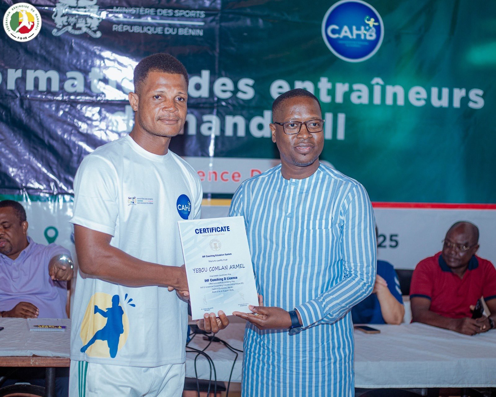 Le Bénin franchit une nouvelle étape dans la professionnalisation de son handball. Ce jeudi 7 août 2025, la Maison du Handball à Cotonou a abrité la cérémonie de clôture de la formation des entraîneurs pour l’obtention de la Licence D IHF. Durant cinq jours, du samedi 2 au jeudi 7 août, 42 encadrants béninois venus des quatre coins du pays ont été formés avec rigueur et enthousiasme. Organisée par le ministère des Sports à travers la Fédération béninoise de handball (FBHB), cette formation s’inscrit dans la dynamique de renforcement des capacités locales.