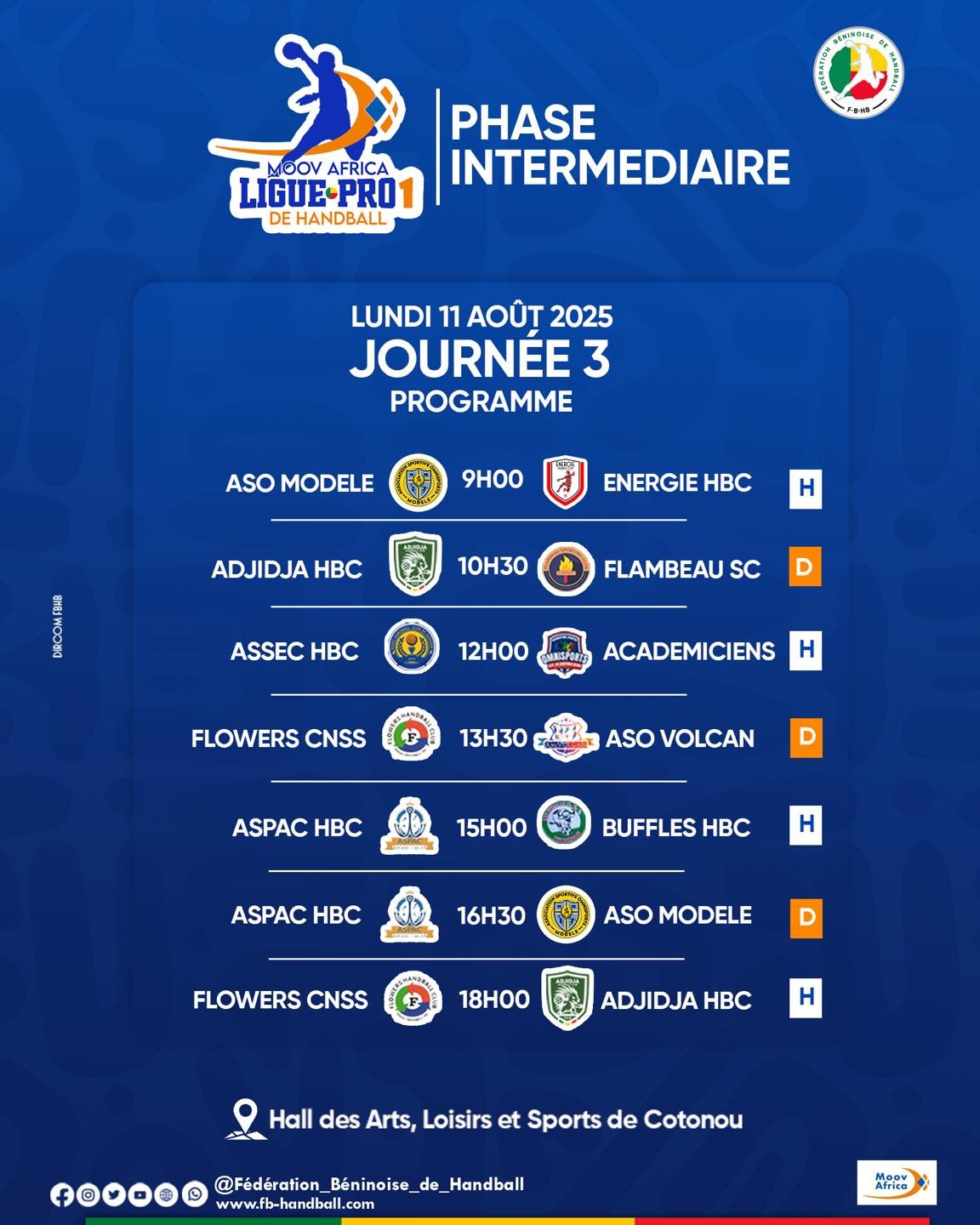 Programme de la J3 ce lundi 11 aout 2025