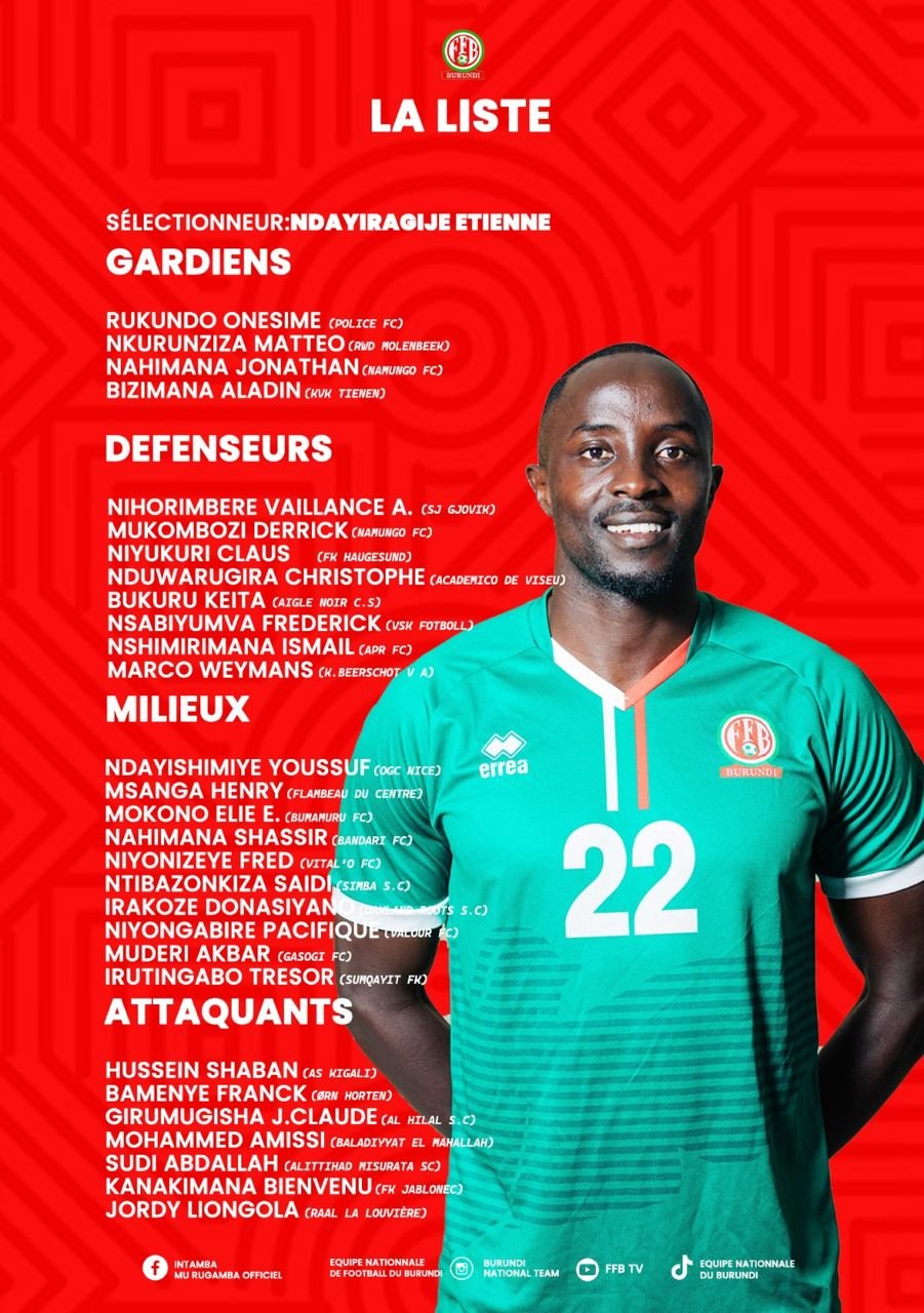 Le sélectionneur de l’équipe nationale du Burundi a annoncé ce jeudi 7 mars 2024 la liste des joueurs convoqués pour les journées FIFA de mars 2024. Cette trêve internationale verra le Burundi affronter le Madagascar et le Botswana dans le cadre de matchs amicaux.