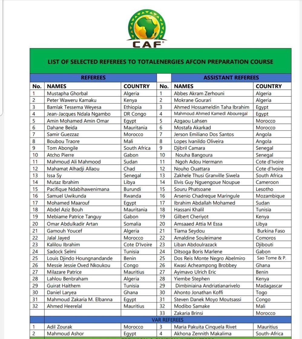 CAN 2023 : Liste complète des arbitres sélectionnés pour le cours de préparation