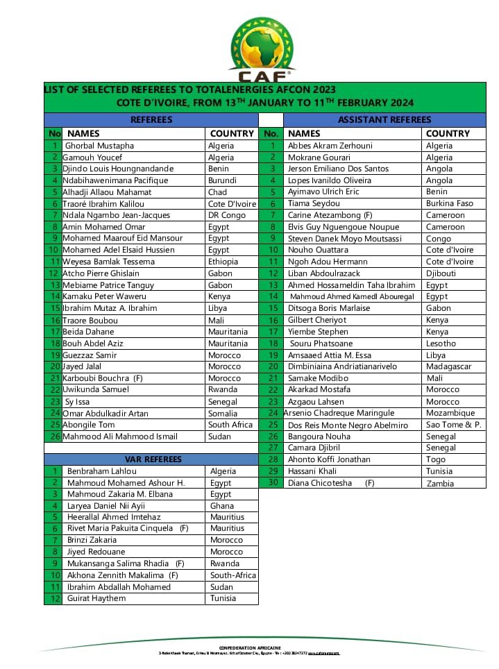 La liste des arbitres pour la CAN 2023 met en avant la diversité géographique des talents africains. Des officiels de plusieurs pays ont été choisis, reflétant ainsi la richesse du football africain et la volonté de la CAF de promouvoir l’inclusion et l’équité dans l’arbitrage continental.