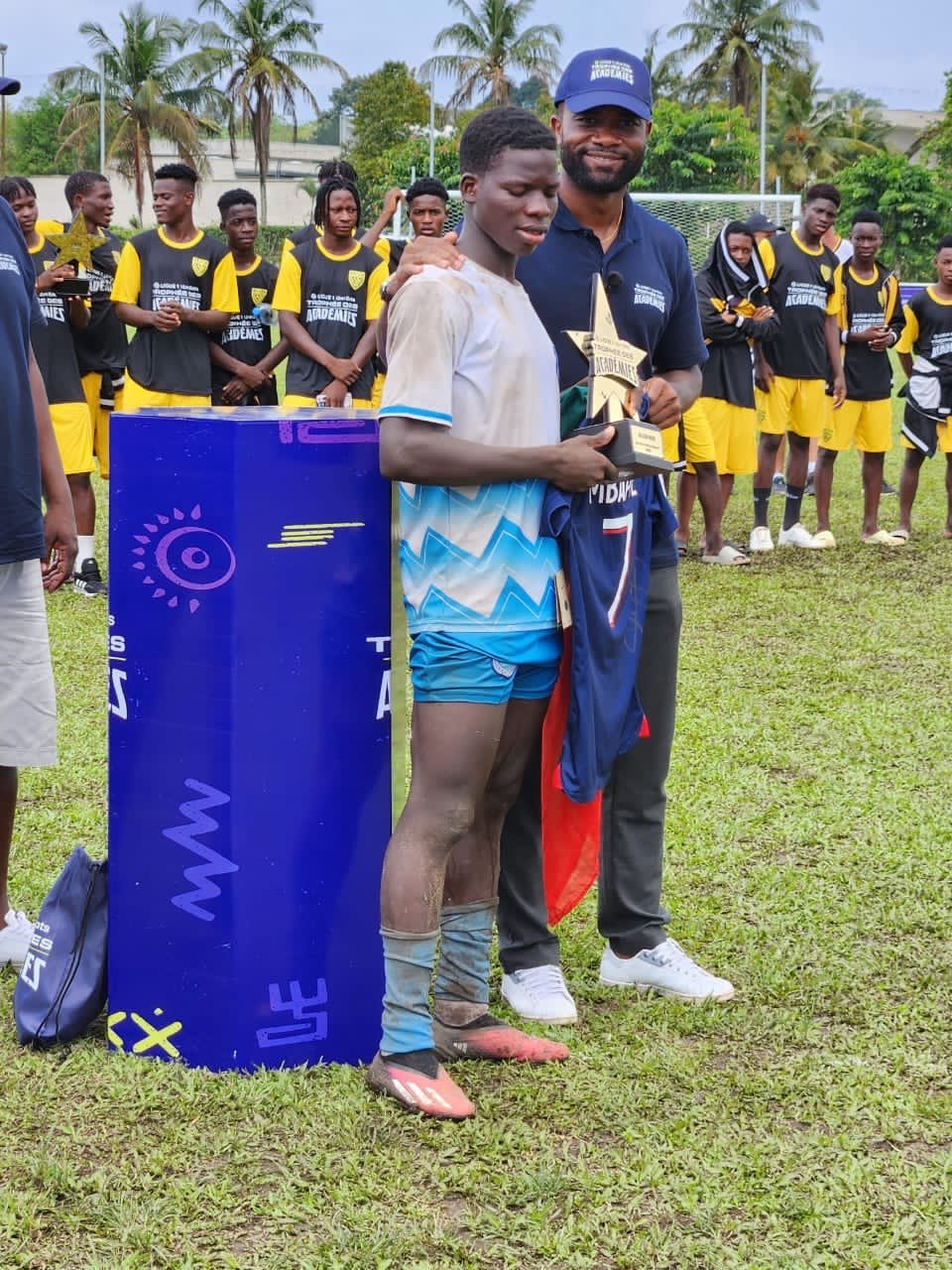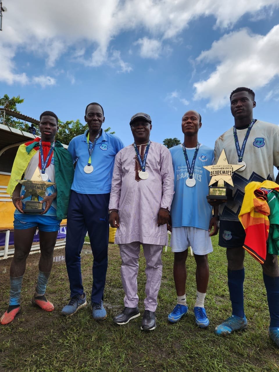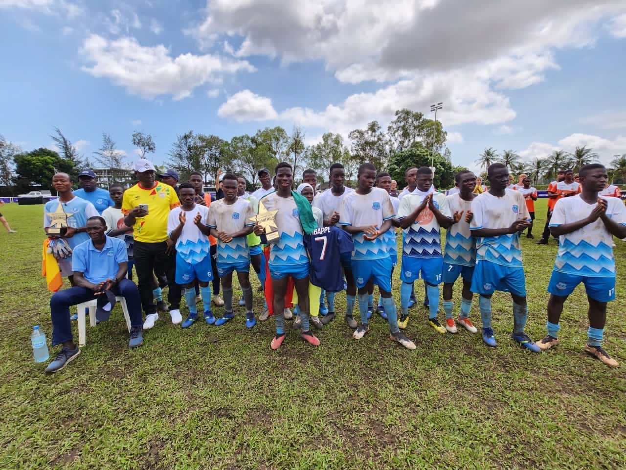 Zéro à zéro au terme du temps réglementaire en finale. L’Académie de l’USS Kraké 🇧🇯 a finalement courbé l’échine lors de la séance des tirs au but face à Dakar Sacre-Cœur 🇸🇳 et termine vice-championne de cette première édition du tournoi du Projet « Académie des Trophées de Ligue 1 Uber Eats », initié par la Ligue 1 Uber Eats. Elle a également prouvé son excellence à travers les distinctions individuelles. En effet, l’USS Kraké 🇧🇯 a réussi à remporter tous les trophées individuels de ce tournoi exceptionnel. Yamirou OUOROU s’est illustré en remportant le titre de meilleur joueur de la compétition. Edmé CODJO a été félicité en tant que meilleur entraîneur. De plus, le titre de meilleur gardien du tournoi est revenu au gardien béninois.