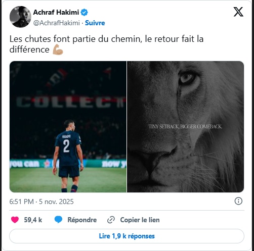 En légende d’une photo de lui-même avec celle d’un lion sur laquelle on peut lire « Petit contre-temps, grand comeback (traduction française, ndlr) », il a en effet posté : « Les chutes font partie du chemin, le retour fait la différence » accompagné de l’émoji force.