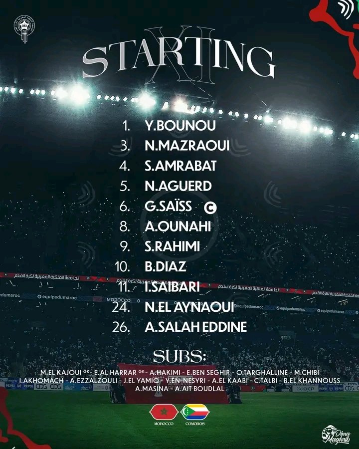 Les hostilités sont lancées pour l’édition 2025 de la Coupe d’Afrique des nations. Le Pays-hôte de la compétition, le Maroc dispute le match d’ouverture face aux Comores ce dimanche 21 décembre 2025. Coup d’envoi à 20h, découvrez les Onzes de depart des deux équipes…