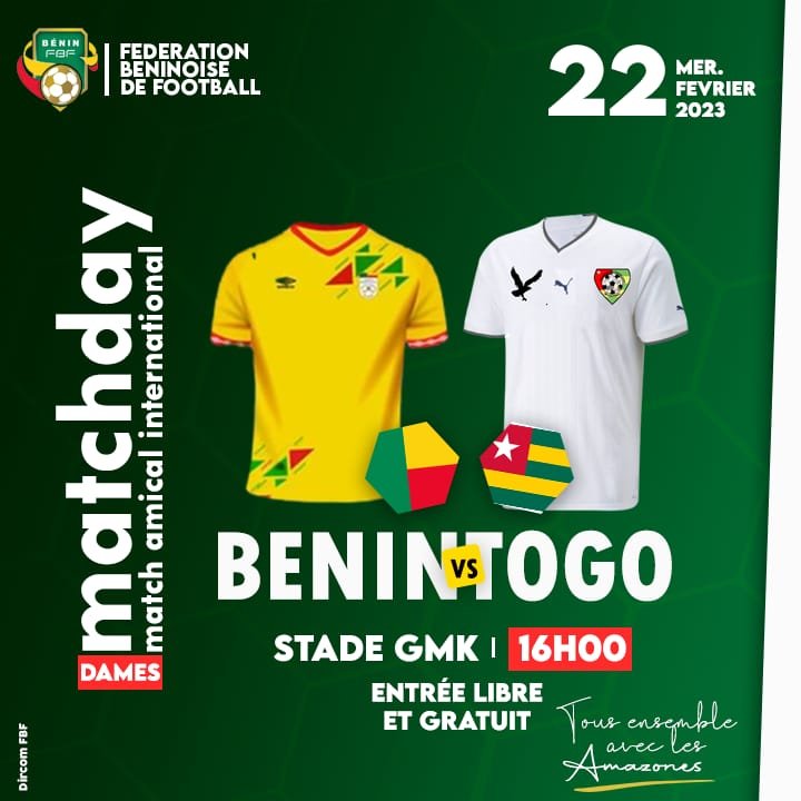 Comme prévu, l’équipe féminine séniore du Bénin va disputer deux matchs amicaux internationaux dans ce mois de février 2023. La première rencontre a déjà été jouée face au Ghana le dimanche 19 février 2023 et s’est soldée par une défaite 3-0 des Béninoises. La seconde rencontre est prévue pour ce mercredi 22 février 2023 face au Togo. Voici ce qu’il faut savoir.