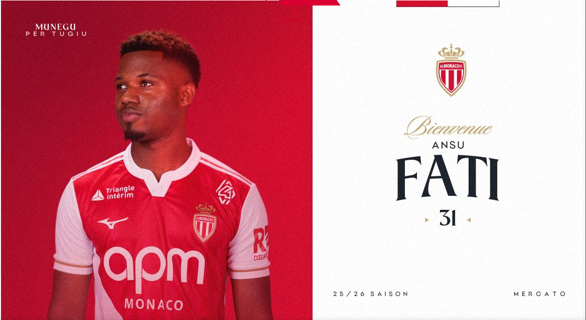 L’AS Monaco a officialisé ce mardi 1er juillet 2025 l’arrivée d’Ansu Fati en prêt pour une saison avec option d’achat. L’attaquant espagnol, formé au FC Barcelone, rejoint la Principauté après plusieurs mois difficiles. Cette signature marque la troisième recrue estivale du club monégasque, qui a déjà enregistré les arrivées du défenseur international anglais Eric Dier et du milieu de terrain français Paul Pogba. Les deux joueurs ont été recrutés libres. Les trois nouveaux venus seront présentés officiellement à la presse le jeudi 3 juillet 2025 au centre de performance de La Turbie.