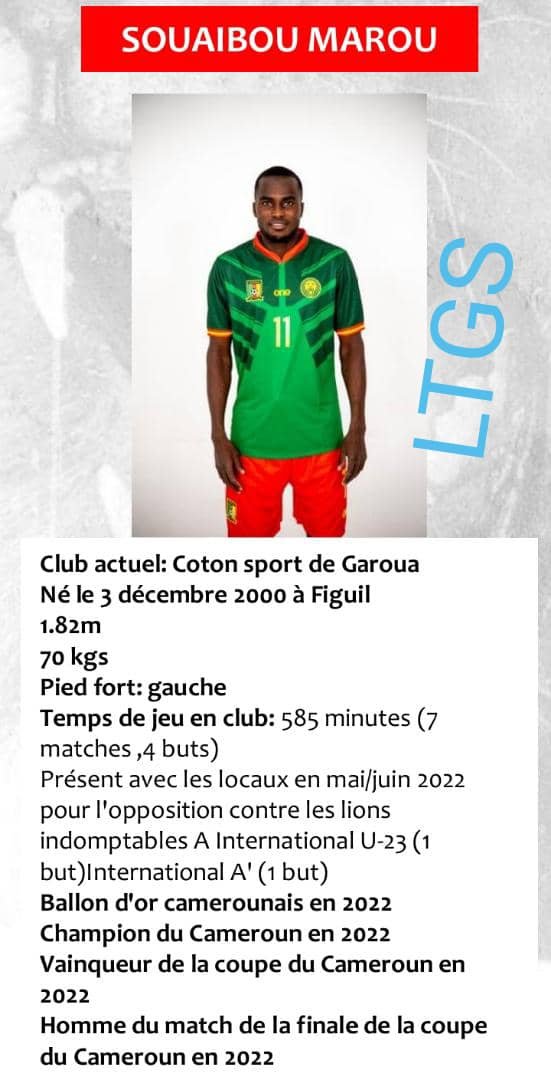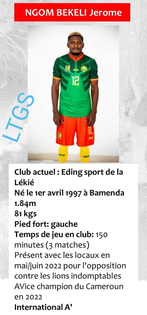 Deux joueurs locaux figurent sur la liste des vingt-six Lions indomptables du Cameroun pour le mondial 2022. Il s’agit de Jérôme Ngom Bekeli et de Marou Souaibou. Cette liste du sélectionneur Rigobert Song est également marquée par l’absence remarquable de Ngadeu, Jerome Onguenne, Enzo Tchato, Jeremy Ebobise, Evans Dicka, Ignatius Ganago.