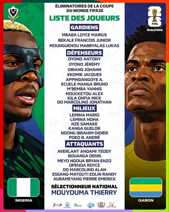 À l’approche des barrages zone Afrique pour la Coupe du monde 2026, le Gabon a rendu publique sa liste pour les matchs des barrages de la Coupe du Monde 2026 face au Nigeria, le 14 novembre 2025. Le sélectionneur National des Panthères a convoqué des 26 joueurs pour affronter le Nigeria et peut-être la RDC ou le Cameroun en finale. Une liste avec tous les cadres de la sélection et des nouveaux choix.