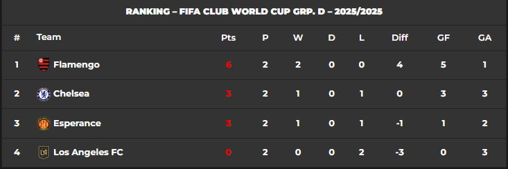 L’Espérance Sportive de Tunis a subi une défaite 3-0 contre Chelsea dans la nuit du mardi 24 au mercredi 25 juin, lors de son dernier match de groupe. Les Tunisiens, eux aussi, sortent de la compétition dès le premier tour.